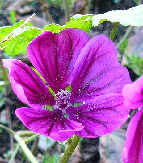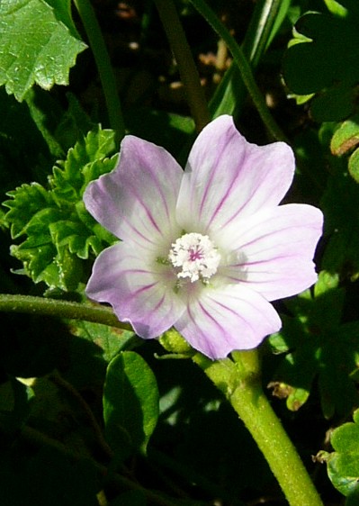 Malva - Kronblätter rosa oder violett, Blätter gelappt, Kelch mit 3 Außenkelchblättern