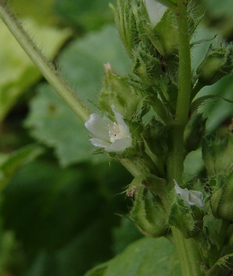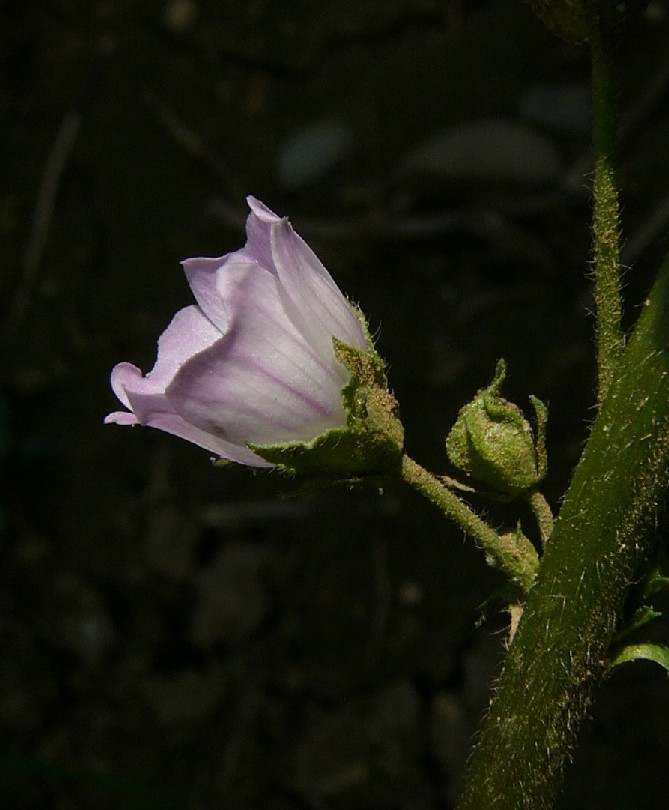 Malva - Kronblätter hellrosa, Blätter gelappt, Blüten klein, hellrosa, Außenkelchblätter linealisch oder schmal oval