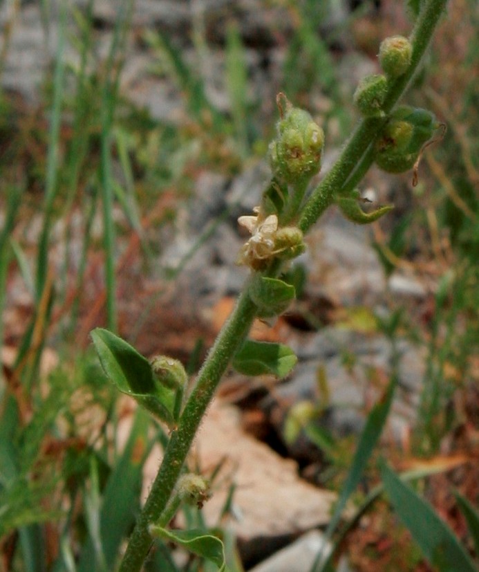 Kelch elliptisch, 6 - 8 mm lang, drüsig, Kelchzipfel stumpf