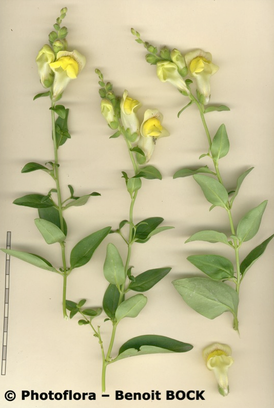 Antirrhinum - Blüten hellgelb, Blätter elliptisch, 1,5 - 3 mal so lang wie breit, stumpf