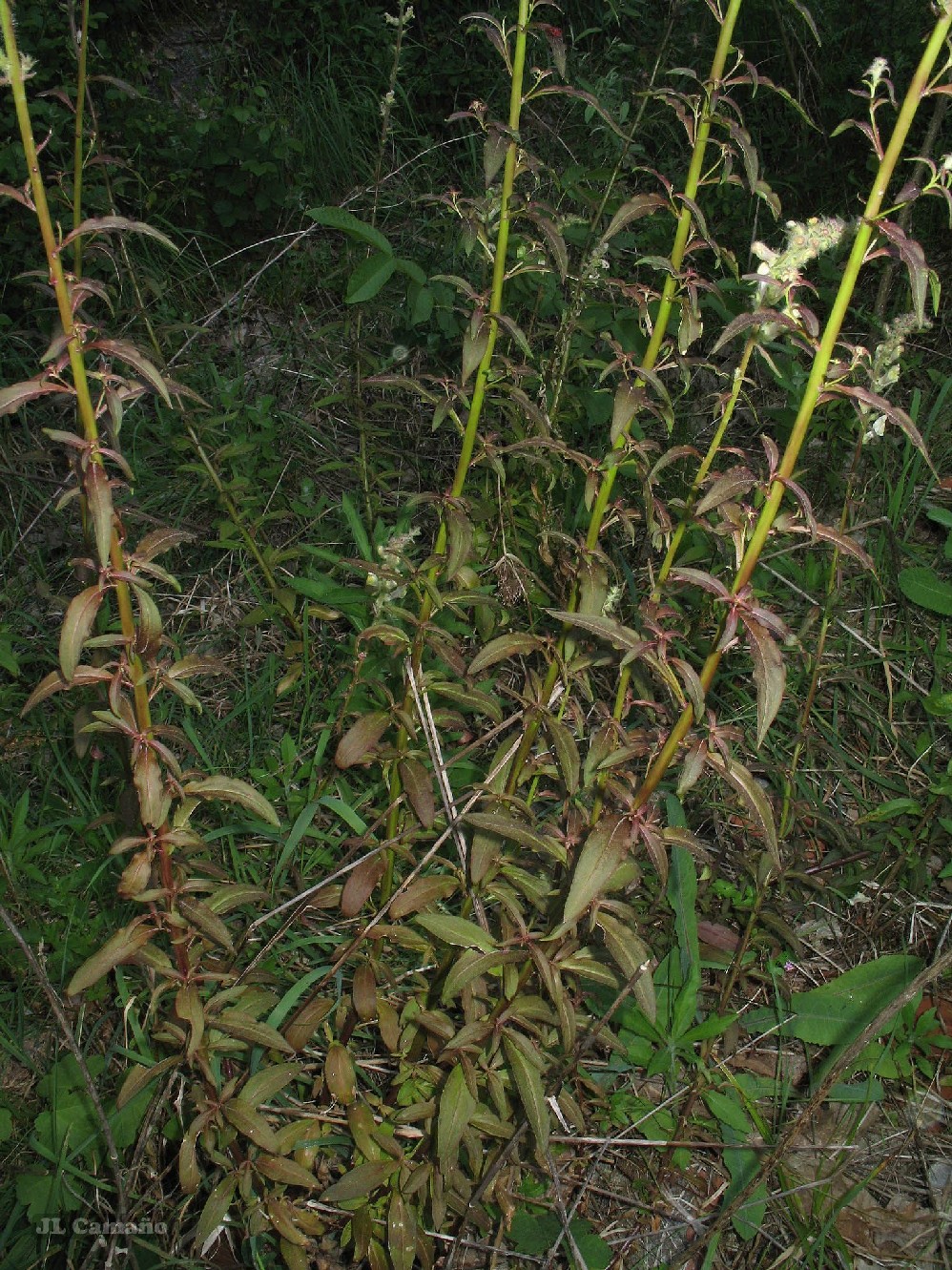 Stängel im mittleren Teil kahl, obere Blätter wechselständig, untere Blätter