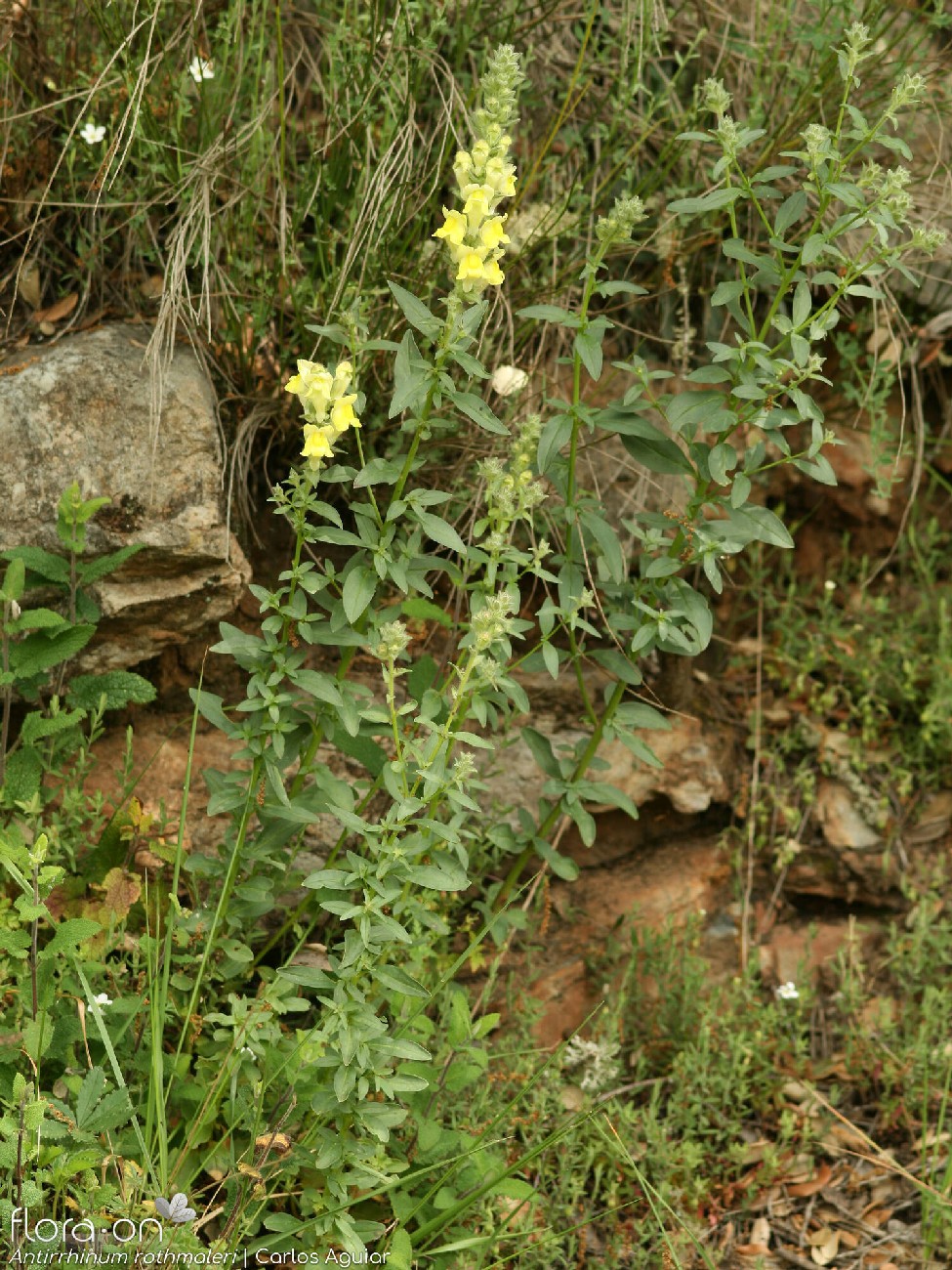 IV - VIII, Felsen, steinige Hänge, Mauern, Straßenränder (0 - 1600 m) Synonyme: English name: Weltweite Verbreitung: 2n= 16 Etymologie: Antirrhinum rothmaleri wurde 2011 in der Publikation "Morphology and Karyology of Antirrhinum rothmaleri comb. & stat. nov. (Plantaginaceae), a Plant Endemic to the NW Iberian Peninsula" von Mónica García-Barriuso et al. von den nahe verwandten Arten Antirrhinum meonanthum und Antirrhinum braun- blanquetii abgegrenzt.