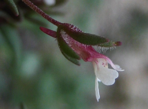 Kelch 5- teilig, Kelchblätter 5 --6 mm lang, ungleich, grün oder violett, auf der Fläche +/- kahl, am Rand bewimpert