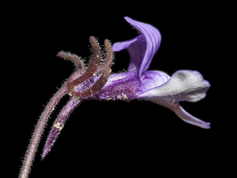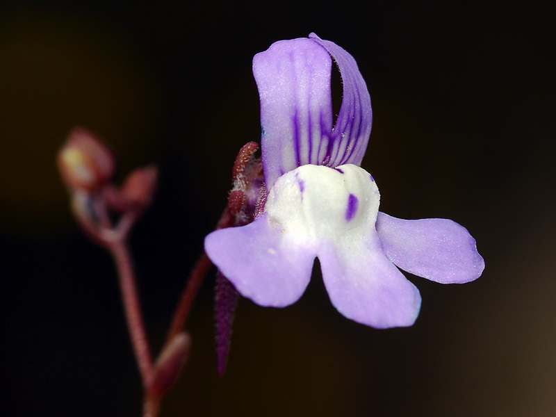 Stängel zumindest am Grund violett, +/- drüsig oder behaart, Stängelblätter gegenständig, lanzettlich, kleiner als die unteren Blätter, manchmal auch fehlend, Blütenstand mit 3 - 20 Blüten, Blütenstiele 9 - 20 mm lang