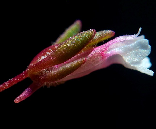 Blüten 5 - 8 mm groß, Kronröhre 3 mm lang, meist rosa, zylindrisch, zusammengedrückt