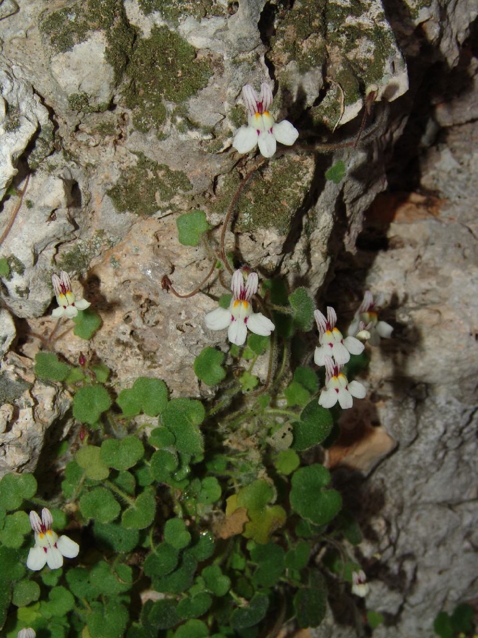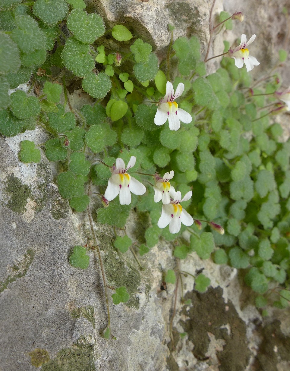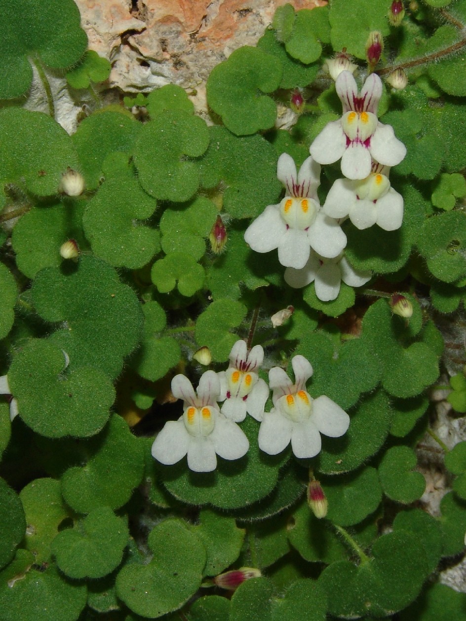 IV - VIII, Mauerritzen, Felsspalten (0 - 1800 m) Synonyme: English name: Weltweite Verbreitung: Worterklärung: Die Nominatform Cymbalaria microcalyx ssp. microcalyx (Boiss.) Wettst. kommt nur auf der Peloponnes vor. |