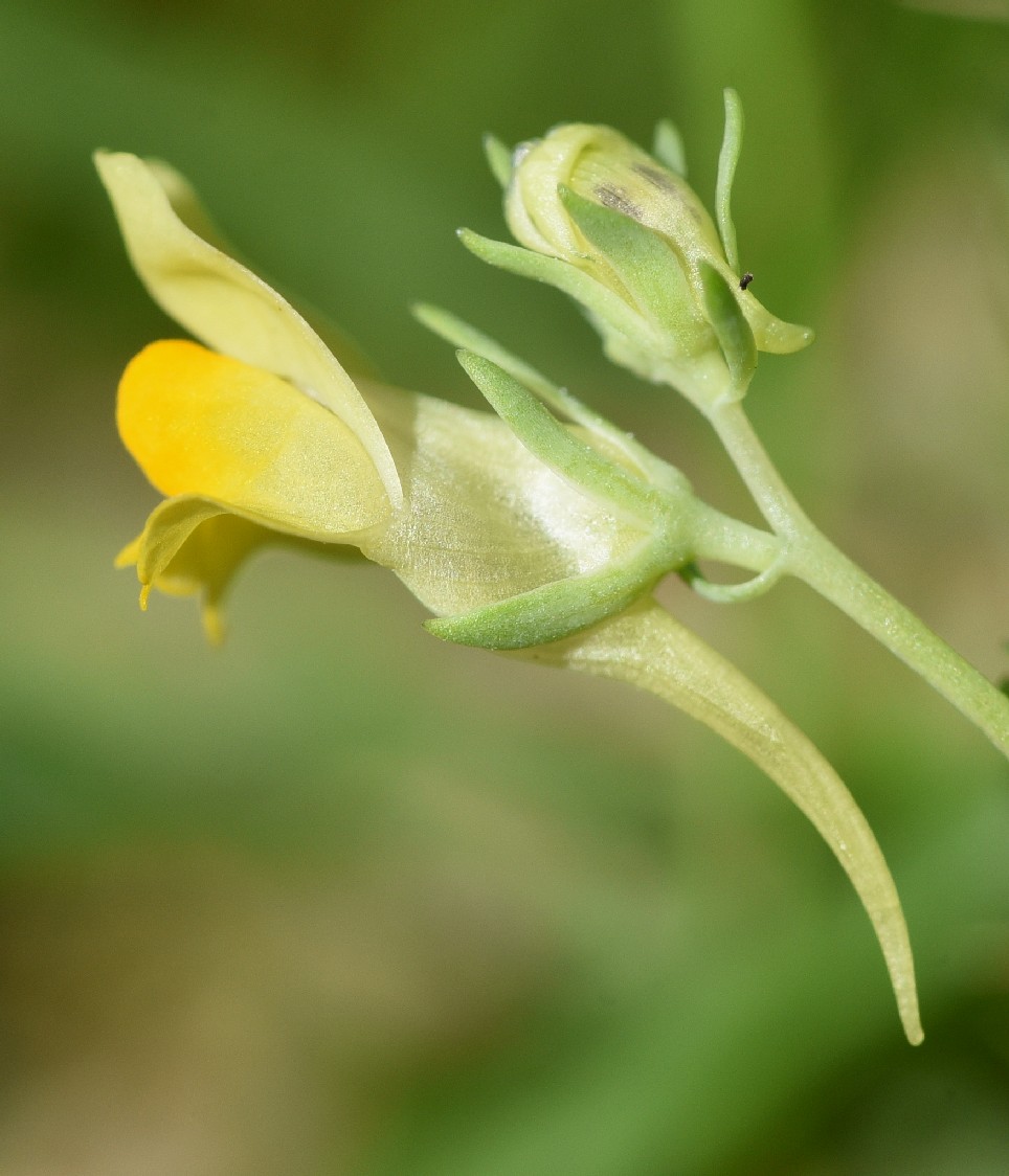 Blüten gelb, weiß oder rosa, ohne deutliche violette Adern, 12 - 20 mm groß, Kronröhre 2 - 4 mm breit, Sporn 5 - 9 mm lang, 1 - 2 mm breit, gerade oder schwach gekrümmt, gelb oder rötlich, ca. so lang wie der Rest der Blüte