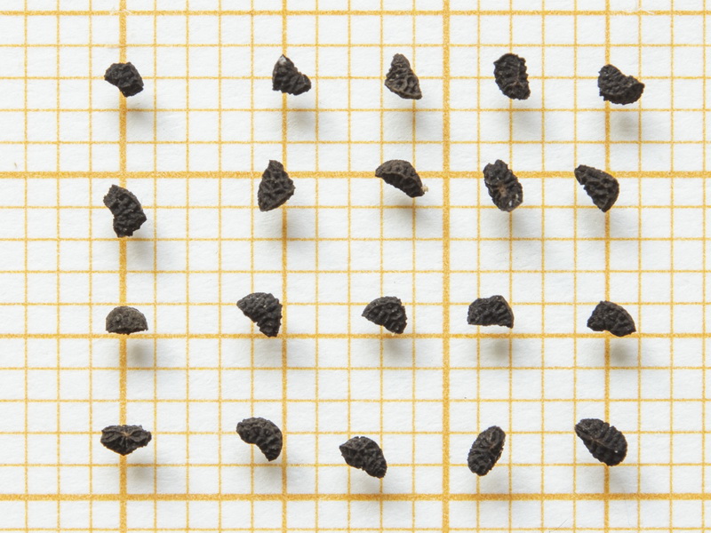 Kapsel eiförmig, 6 - 9 mm lang, 6 - 7 mm breit, kahl, Samen nicht geflügelt, 1,4 - 1,8 mm lang, tetradrisch oder dreieckig, grubig, grauschwarz
