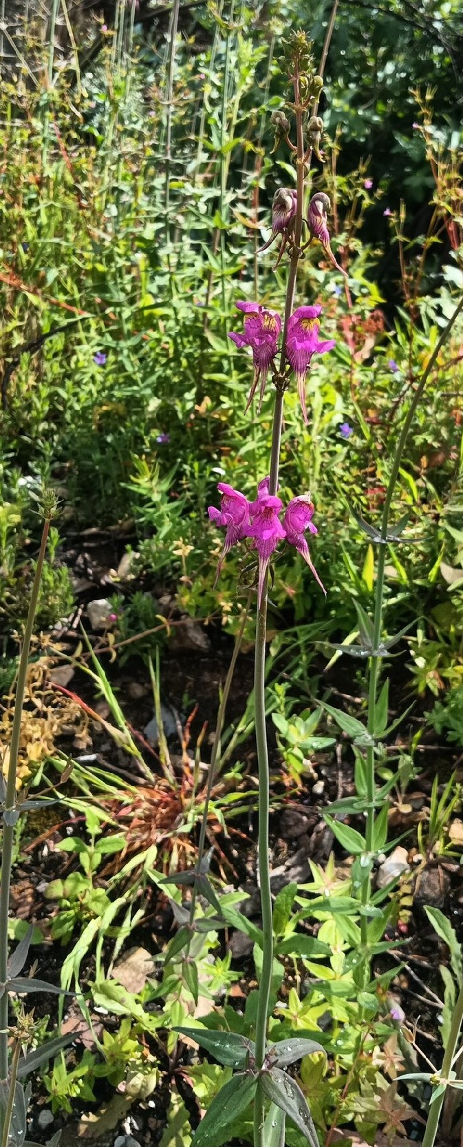 Spanien Blüten 35 - 55 mm groß, dunkelrosa oder violett, in Wirteln zu 3 - 5 > Linaria triornithophora