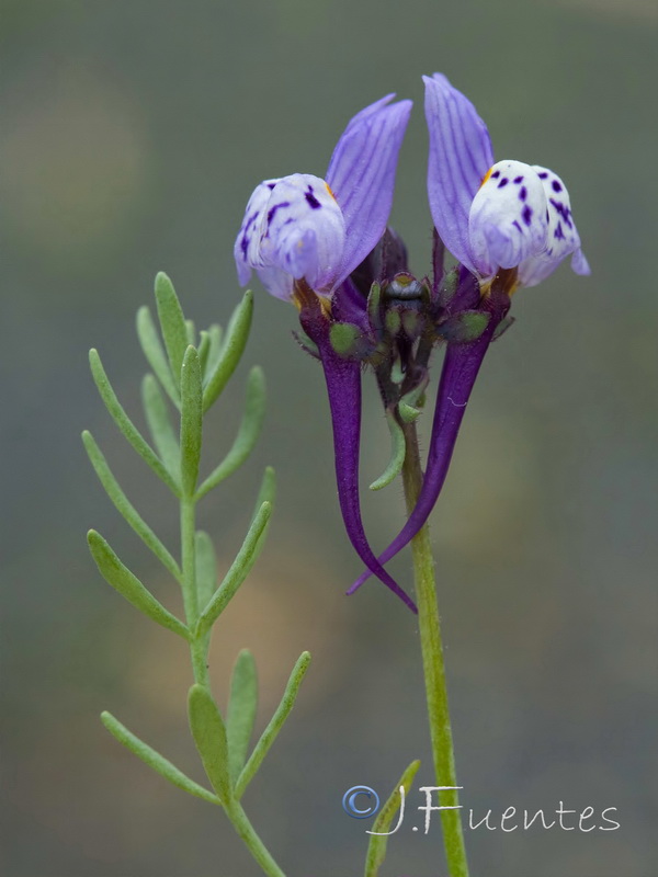 blau, rosa oder violett, Gaumen gelb, Kronröhre schmal, vom Sporn kaum