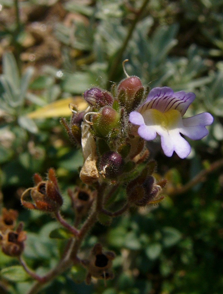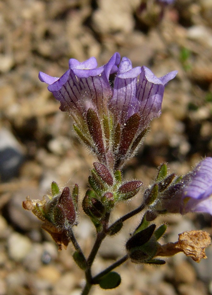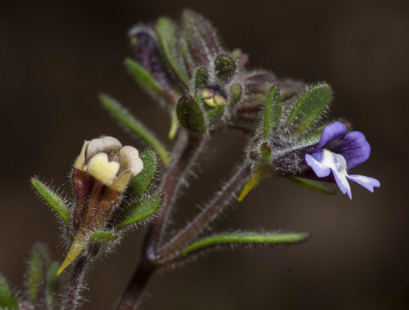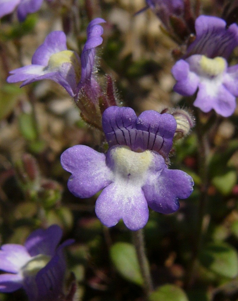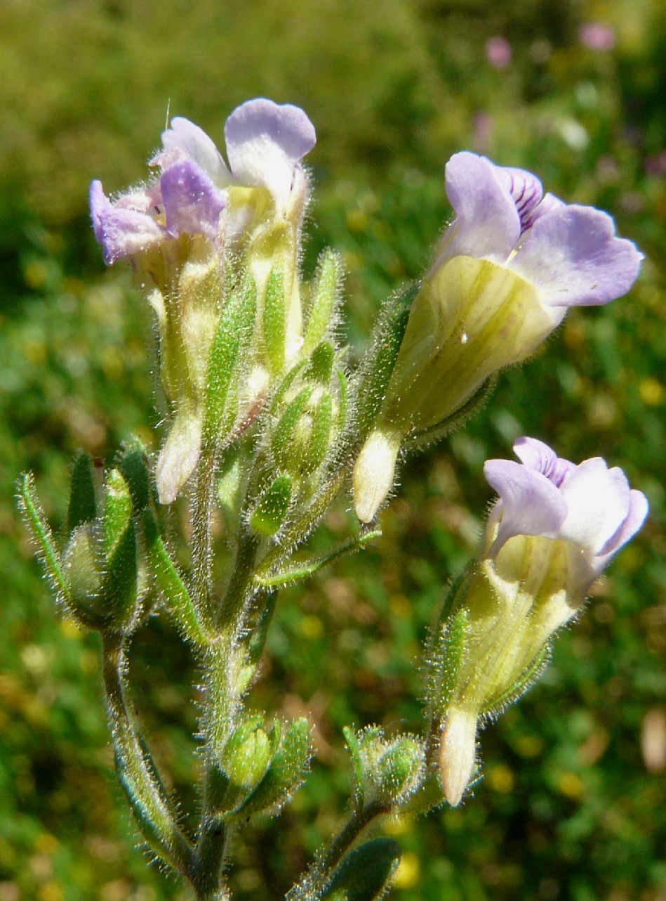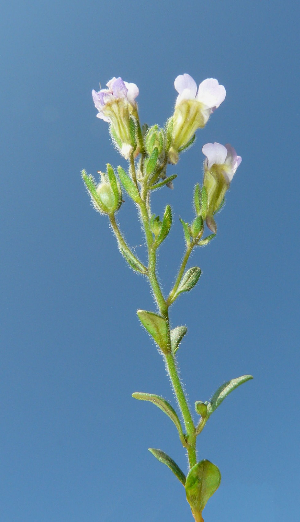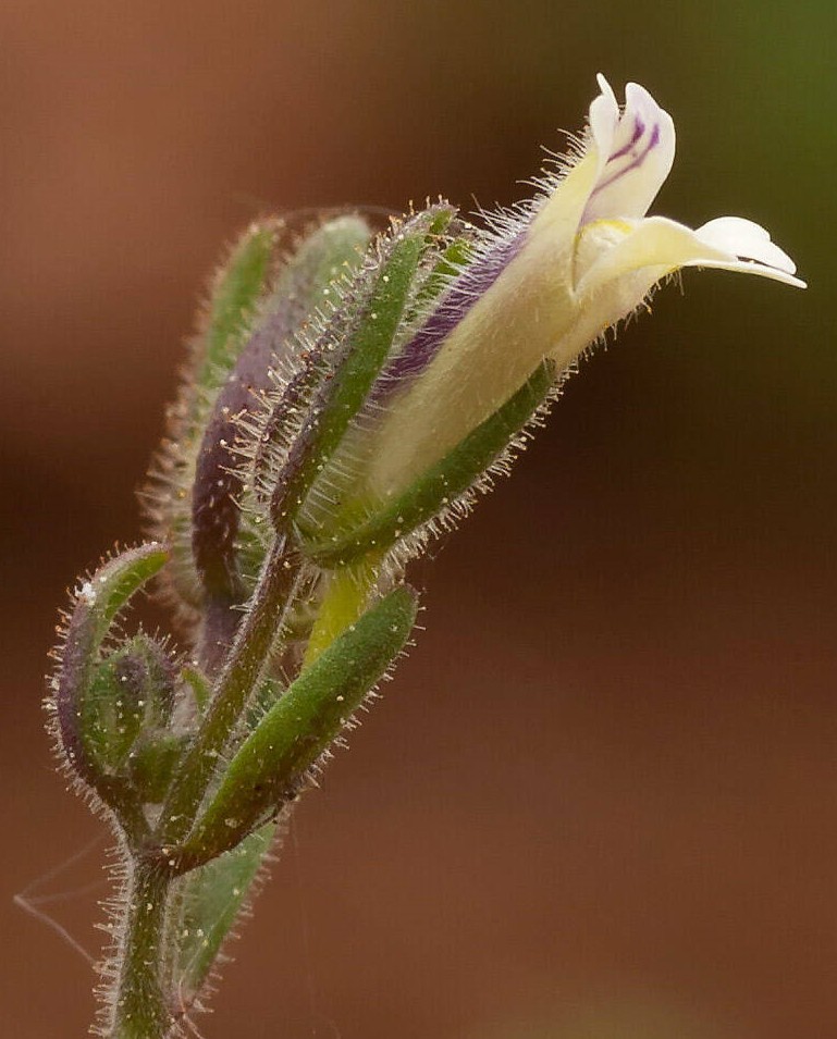 Blüten 7 - 11 mm lang, entweder fast vollständig cremefarben oder violettblau mit weißem Gaumen,