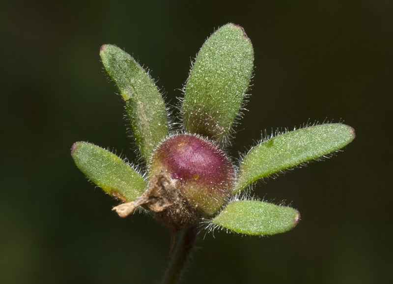Früchte 3 - 5 mm lang, kugelig, behaart, viel kürzer als der Kelch