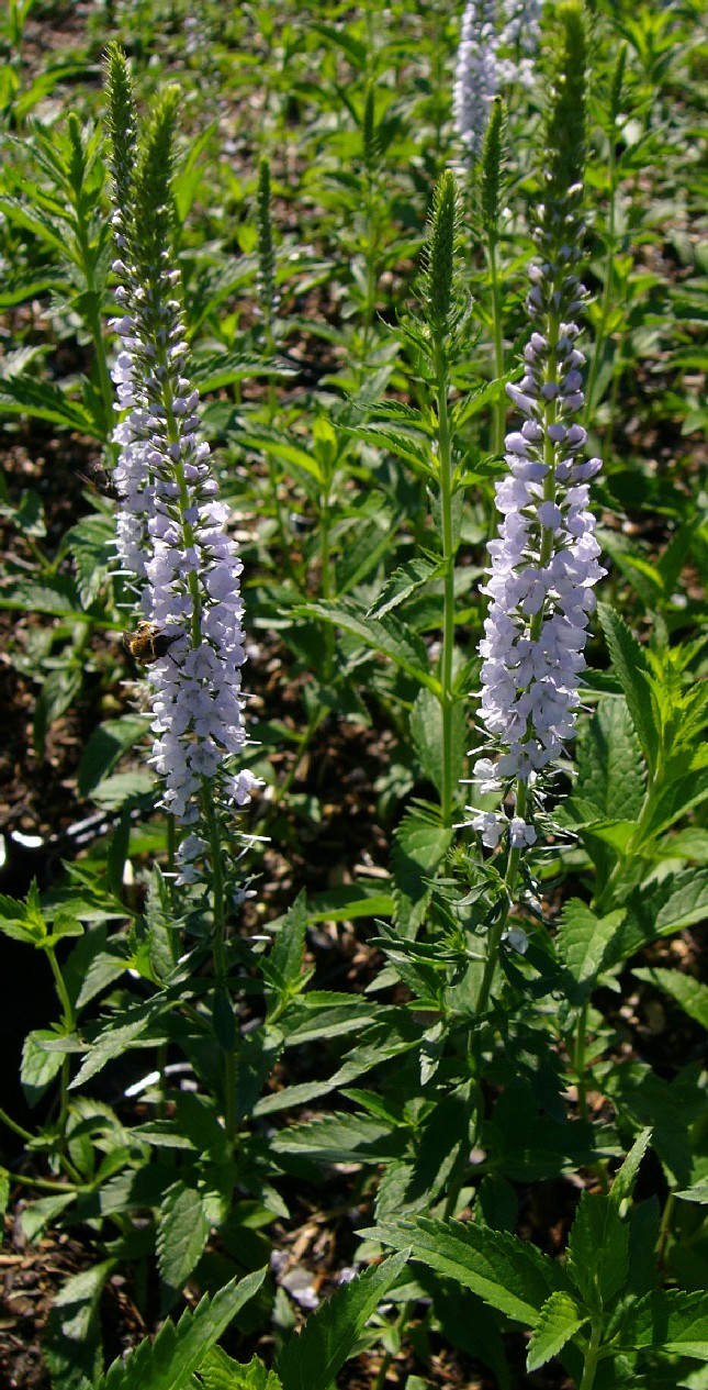 'Blauriesin': Blüten blauviolett Bei der Unterart Veronica longifolia subsp. longifolia ist der Blattgrund gestutzt bis herzförmig; die meist gegenständig angeordneten Blätter sind etwas breiter (bis zu vier Zentimeter) und regelmäßiger gesägt. Bei der Unterart ''Veronica longifolia subsp. maritima sind die Blätter zu 3 oder 4 im Wirtel, eher schmal-lanzettlich, unregelmäßiger gesägt und der Blattgrund ist keilig. Die Unterscheidung der Unterarten ist allerdings taxonomisch umstritten. |