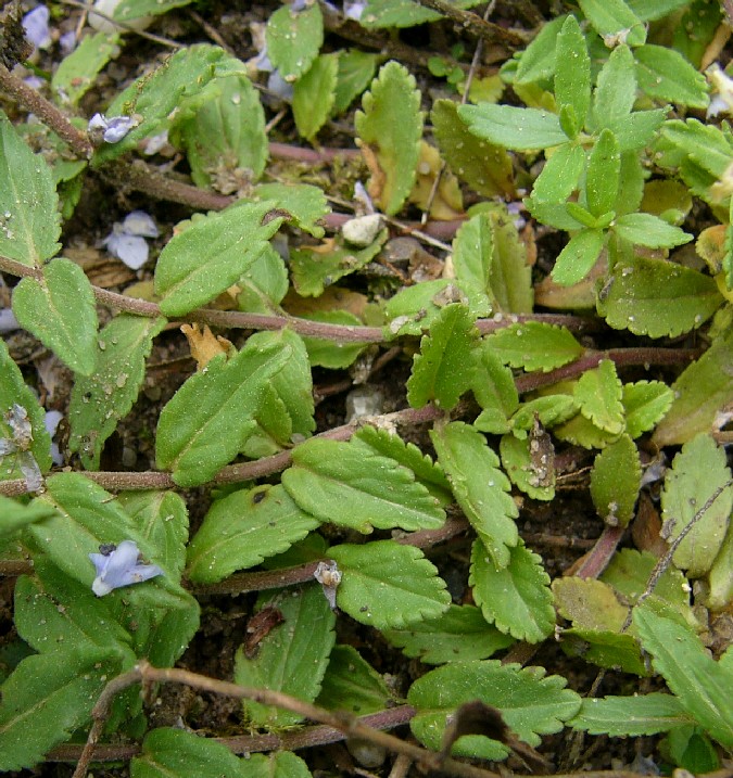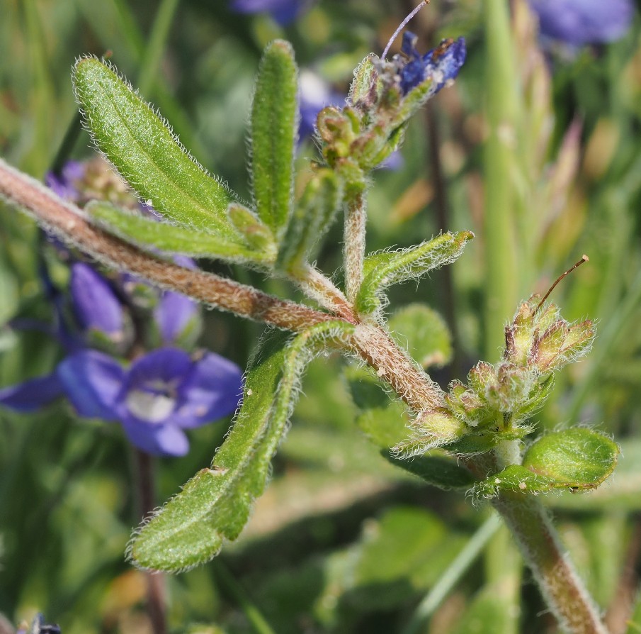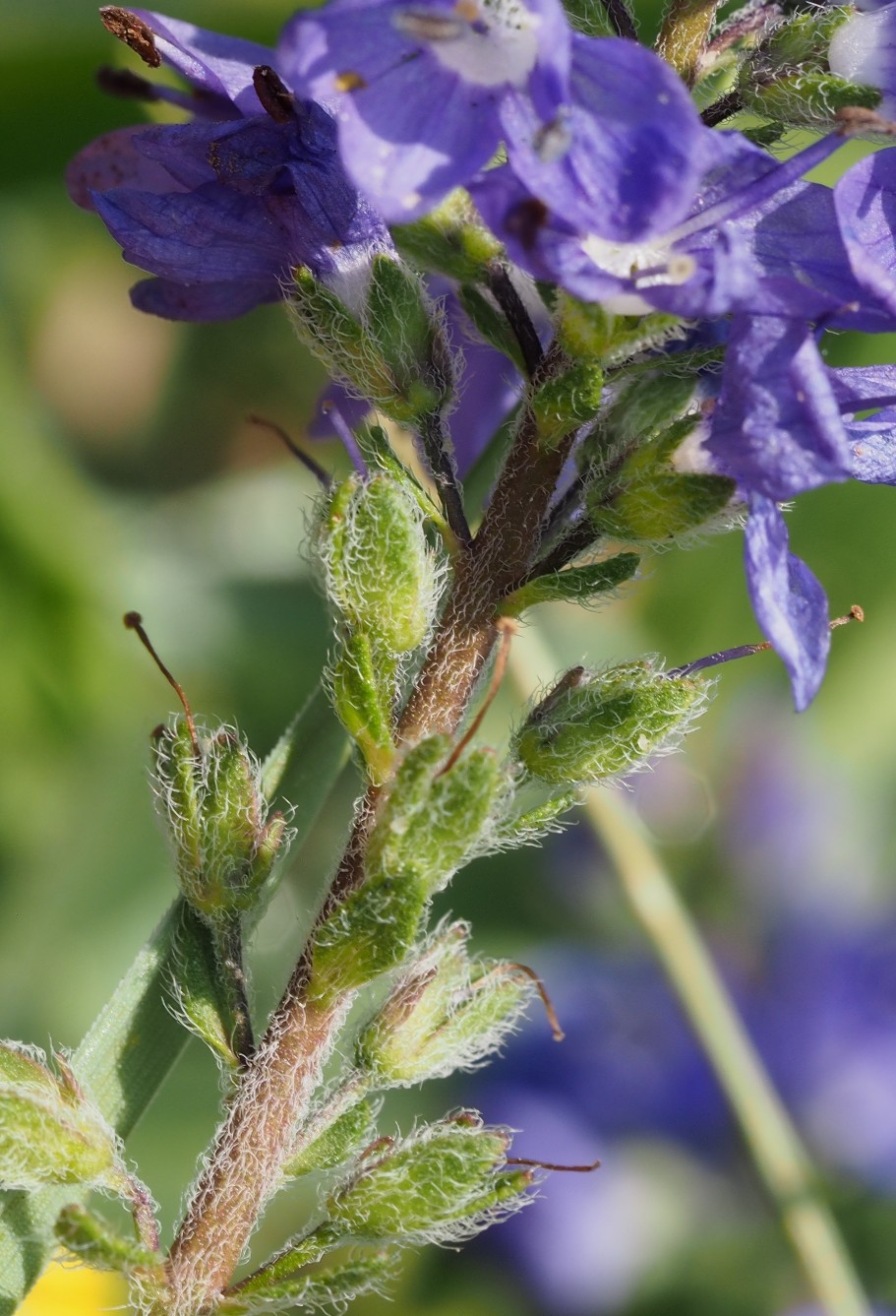 Blüten blassblau Kelch und Fruchtkapsel behaart,