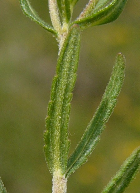 Kapsel kahl, kaum ausgerandet Alle Stängelblätter elliptisch bis linealisch, ganzrandig oder schwach gekerbt, oft umgerollt Fast nur der Mittelnerv der Blattunterseite mit 3 - 5 mm langen Haaren