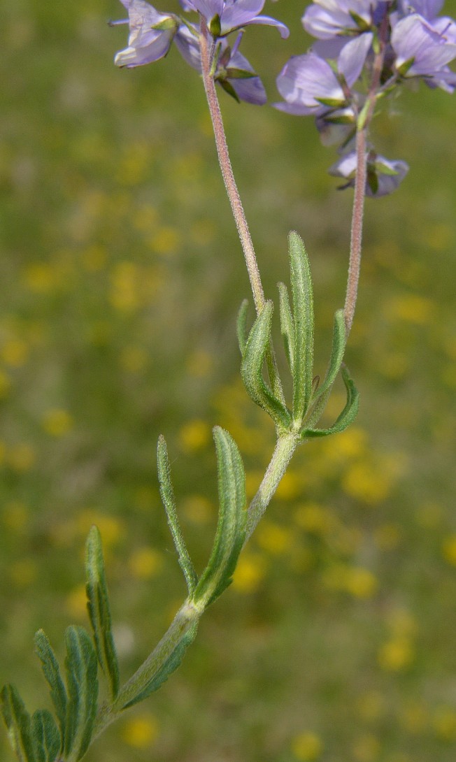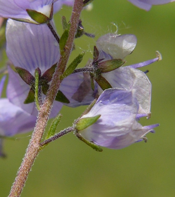 Blüten in 15 - 20- blütigen Trauben Junge Blüten sattblau Kelch kahl, höchstens am Rand behaart