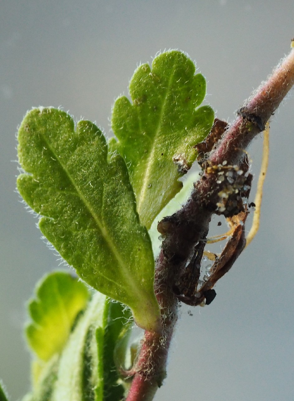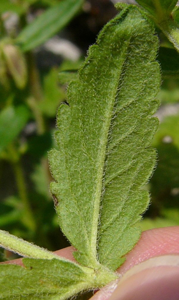 5 Laubblätter dicht kurzflaumig, Haare ca. 2 mm lang