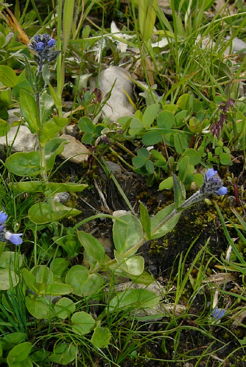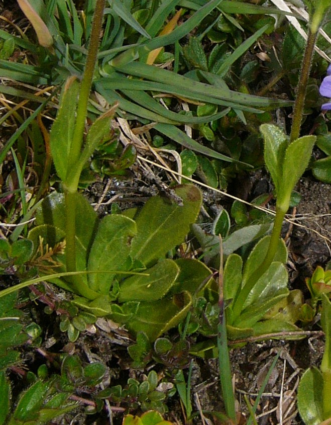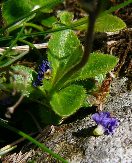 Blätter rosettig, eiförmig - rundlich, langhaarig