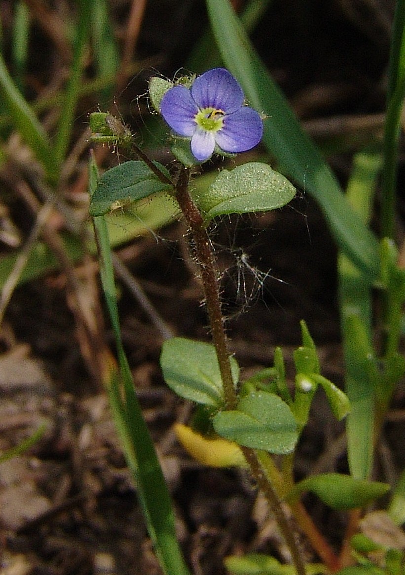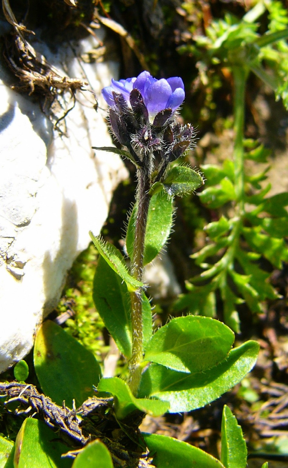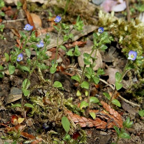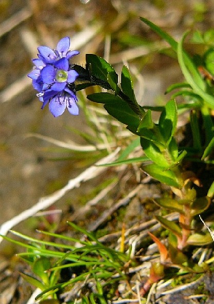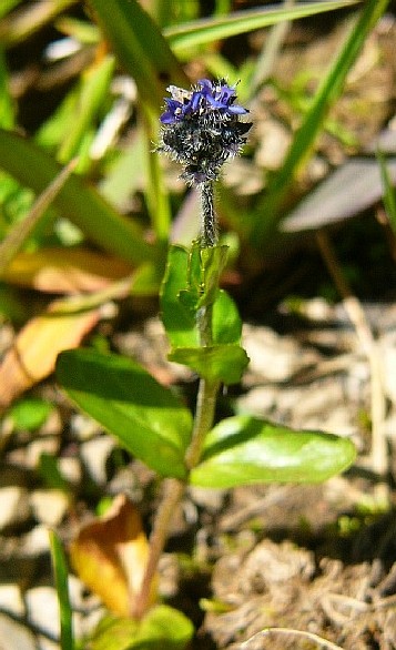 Blüten klein (5 - 6 mm), dunkelblau, mit gelbem Schlund
