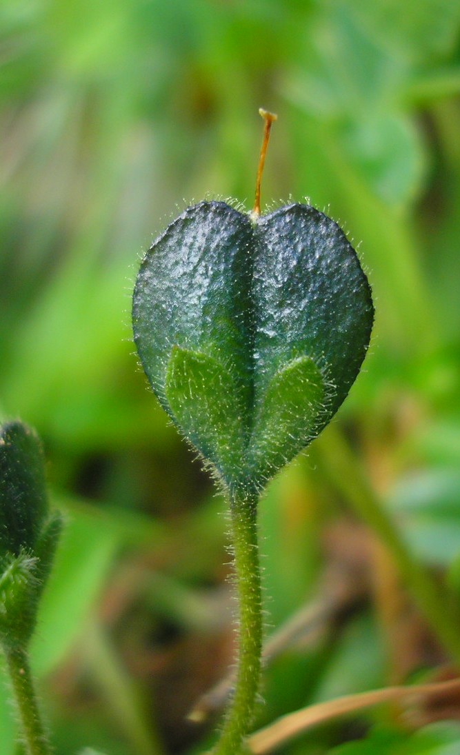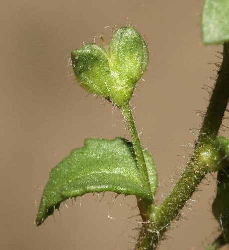Frucht spitz ausgerandet, den Kelch um das Doppelte überragend, drüsig