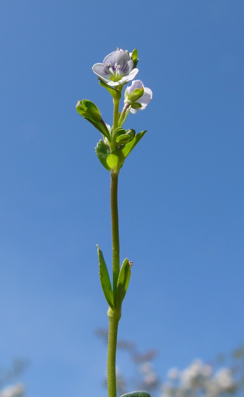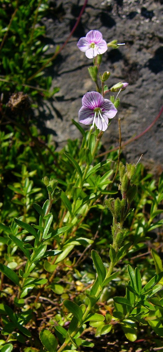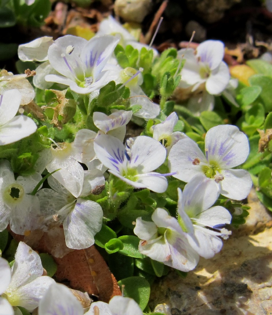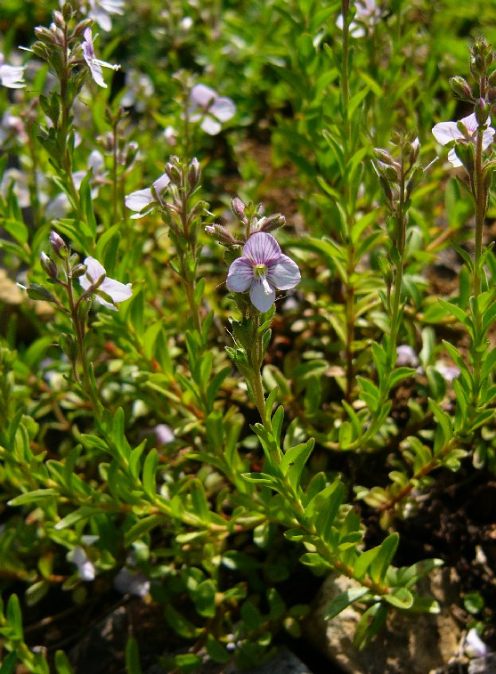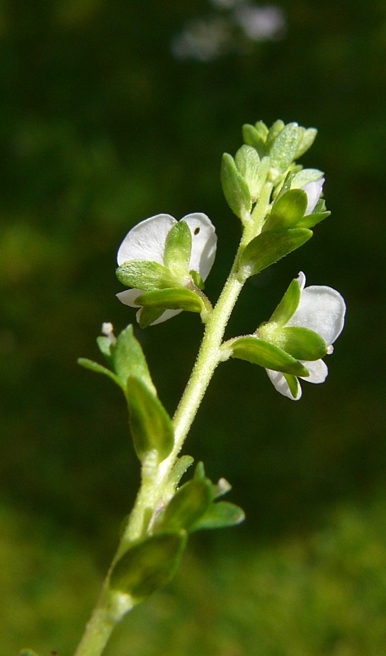 Veronica - Blüten weißlich, mit dunklen Adern - Blüten einzeln in den Achsel von Tragblättern, ohne seitenständige Blütentrauben, Blätter +/- ganzrandig