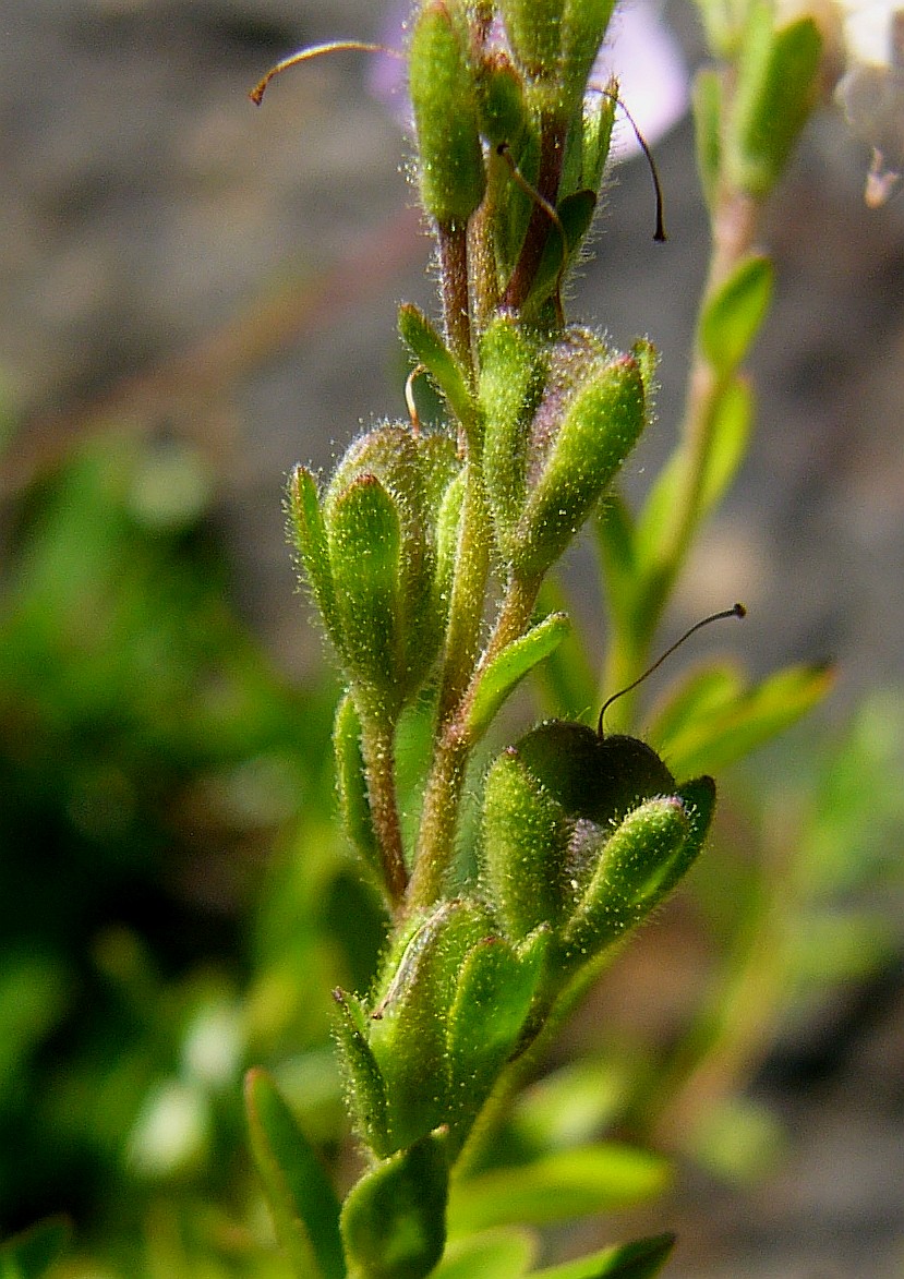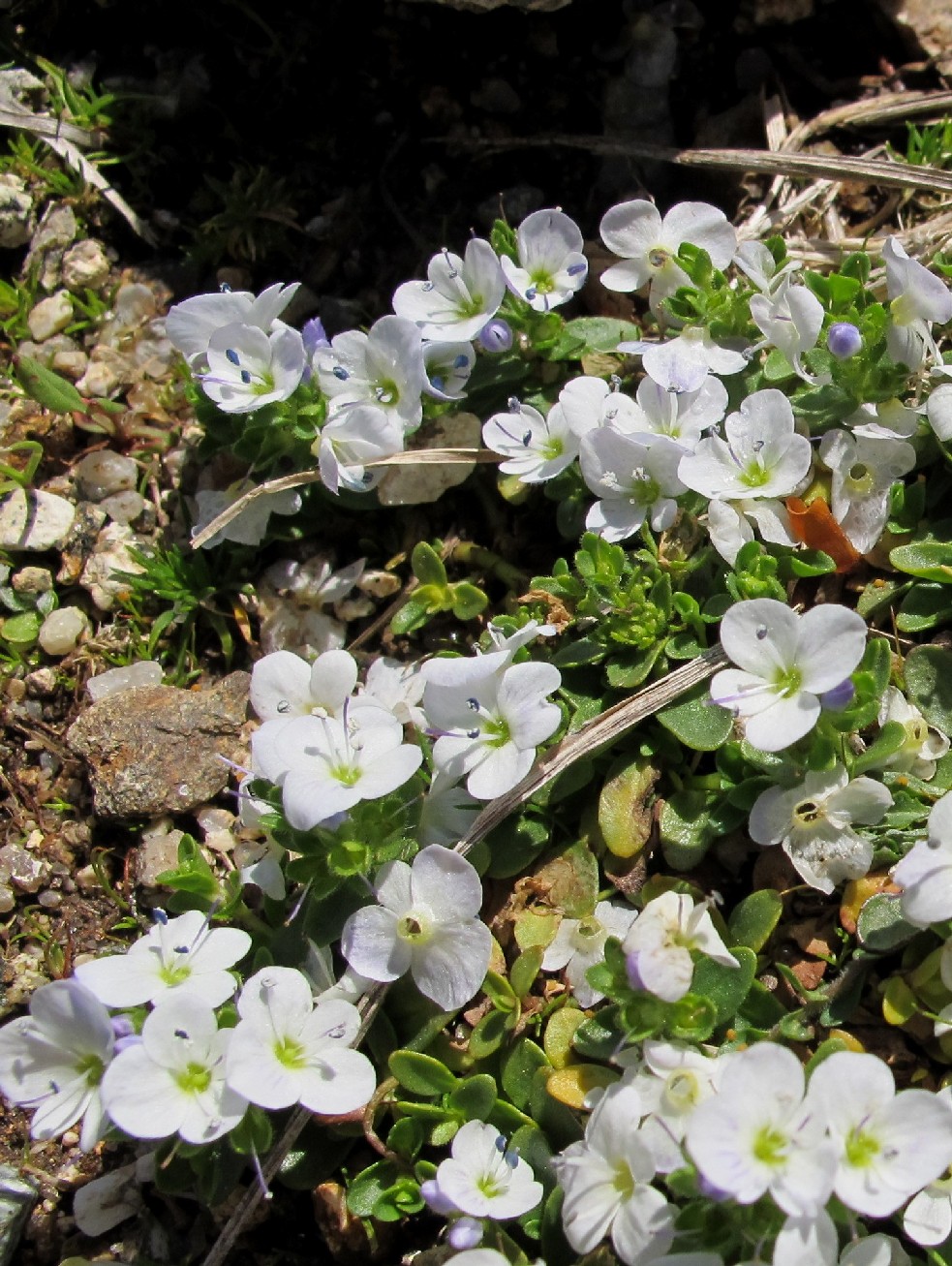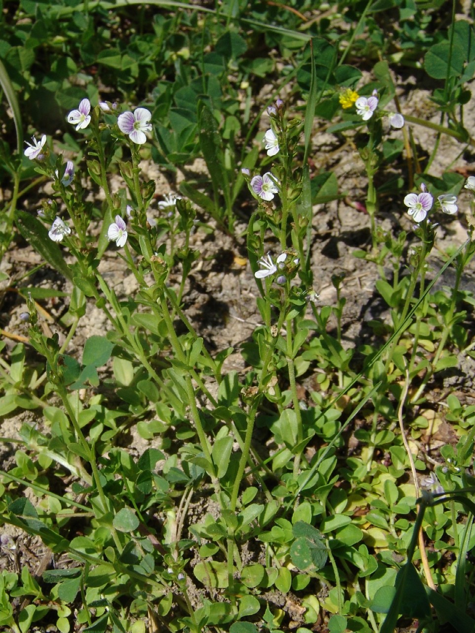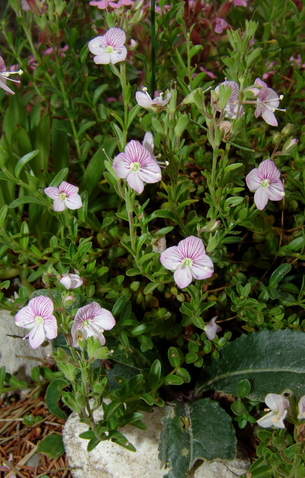 Veronica - Blüten weißlich, mit dunklen Adern - Blüten einzeln in den Achsel von Tragblättern, ohne seitenständige Blütentrauben, Blätter +/- ganzrandig