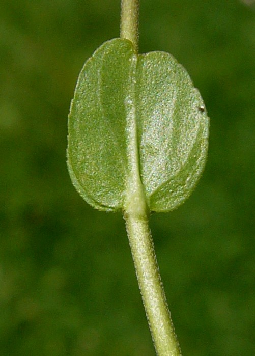Blätter rundlich bis eiförmig, 8 - 25 mm lang, 5 - 13 mm breit, ganzrandig oder schwach gelappt, dicht behaart oder kahl