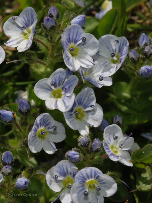 Blüten mittelgroß (10 - 14 mm), weißlich, mit blauen oder violetten Adern