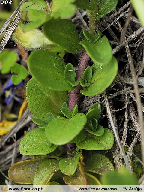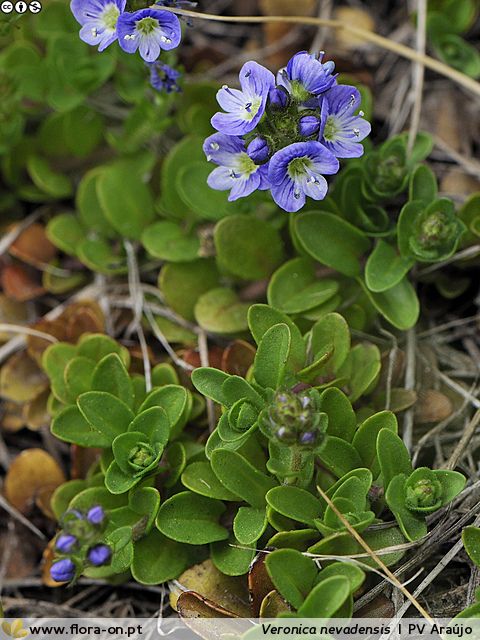 Veronica repens. Die Varietät Veronica nevadensis var. nevadensis Pau iste ein Endemit der Sierra Nevada und der Sierra de Los Filabres, während die in allen Teilen größere Veronica nevadensis var. langei (Lacaita) Mart. Ortega & E. Rico nur in der Sierra Segundera, der Sierra de la Cabrera und der Sistema Central vorkommt.