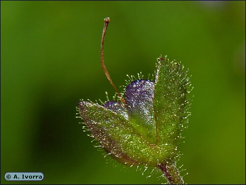 4 Blüten mittelgroß (10 - 14 mm), Blütenstiele und Kelch drüsig, flaumig