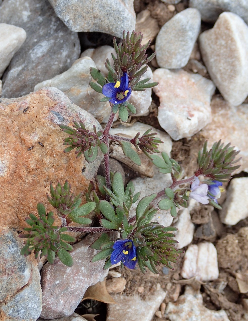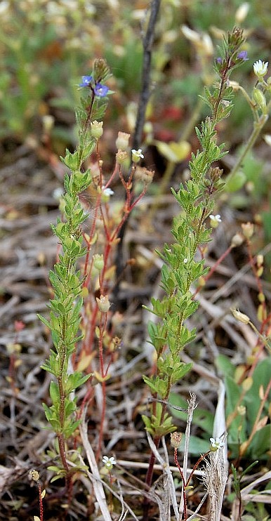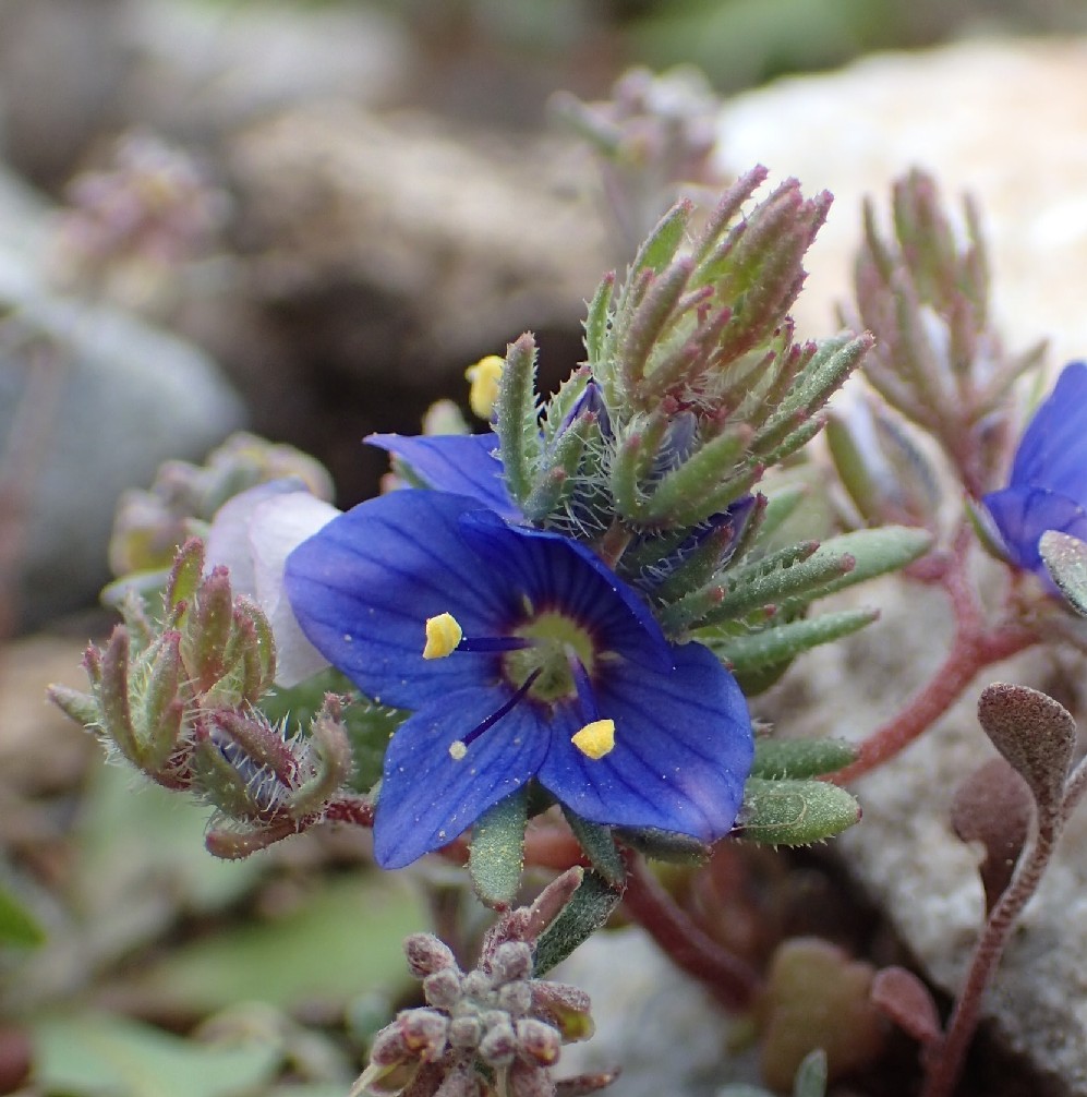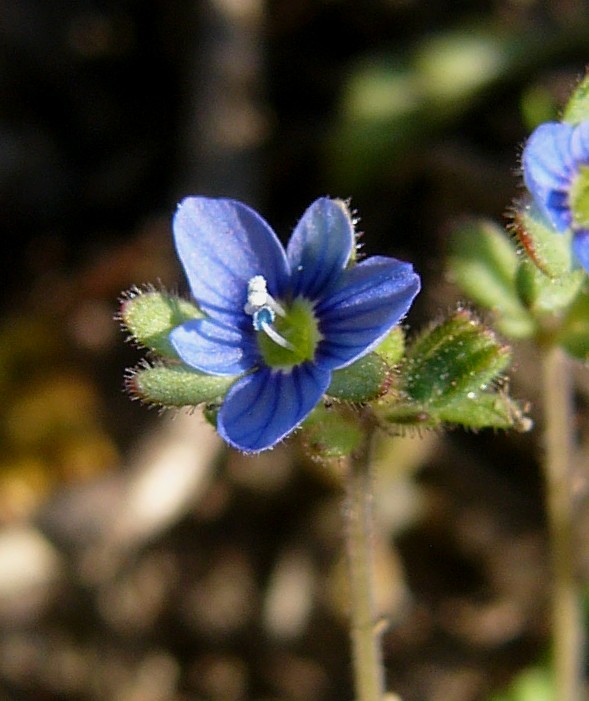 Blüten sehr klein (2 - 3 mm), dunkelblau, Griffel 0,2 - 0,6 mm lang,