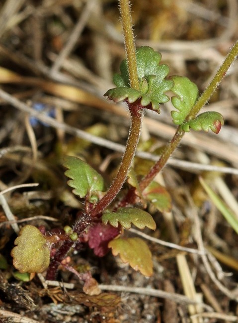 2 Pflanze +/- niederliegend, drüsig oder nicht drüsig, obere Blätter +/- wie die unteren, Blätter gestielt