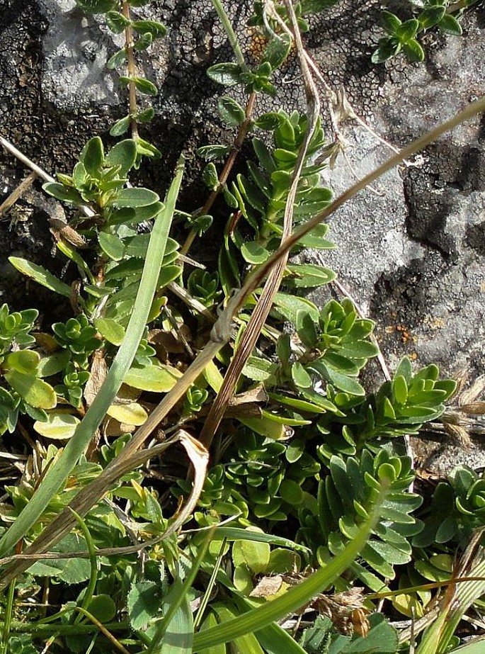 Frucht +/- herzförmig, kahl oder schwach bewimpert Stängel am Grund verholzt, Blätter elliptisch, 5 - 8 mm lang 3 - 4 mm breit, ganzrandig oder gezähnt, kahl oder spärlich bewimpert, dicht dachziegelig zusammenstehend