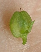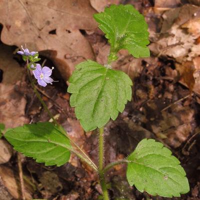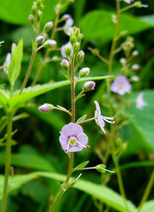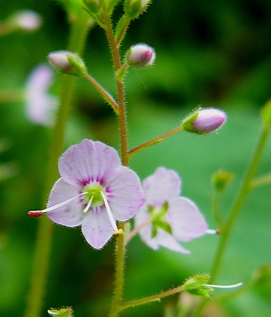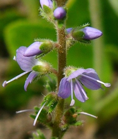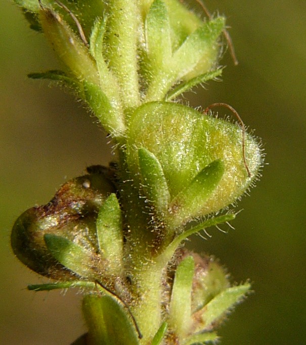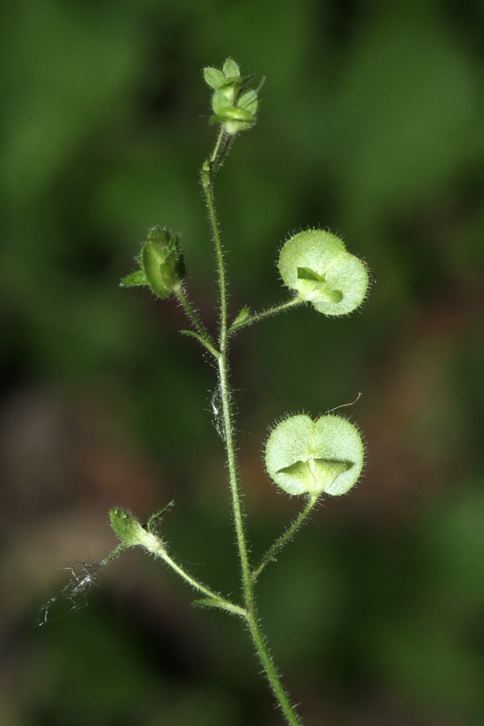 Blüte blasslila, 6 - 7 mm im Durchmesser, schwach glockig dunkel geadert Früchte dreieckig, flach, kaum ausgerandet