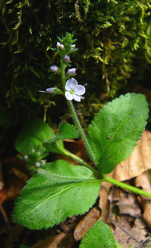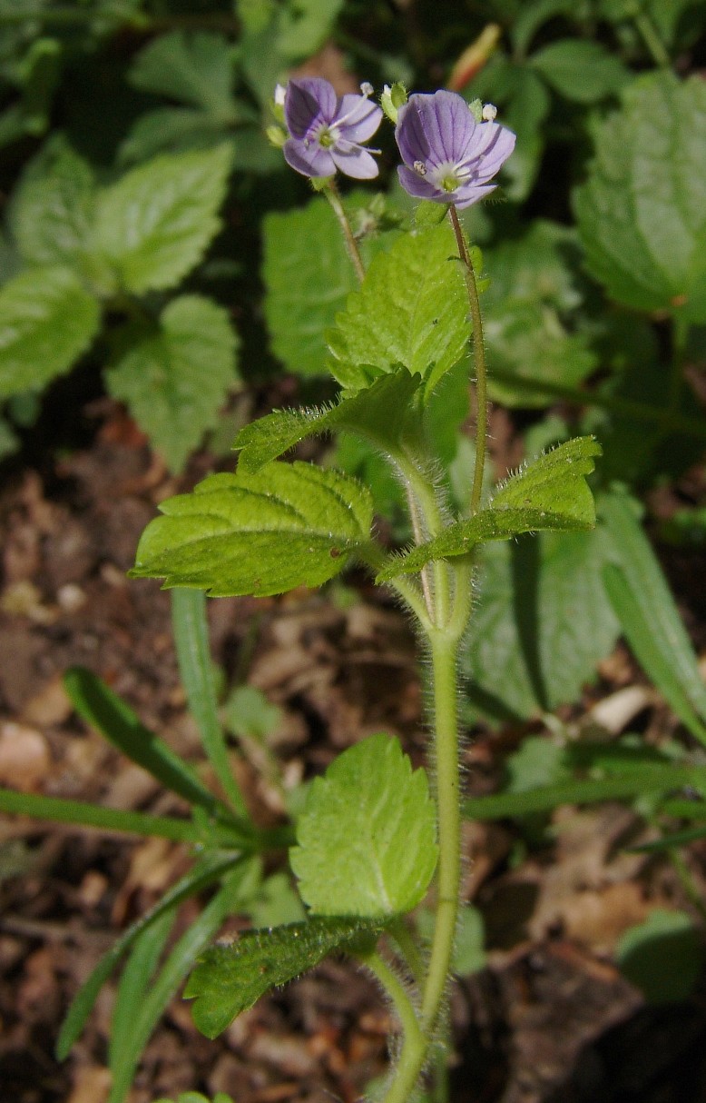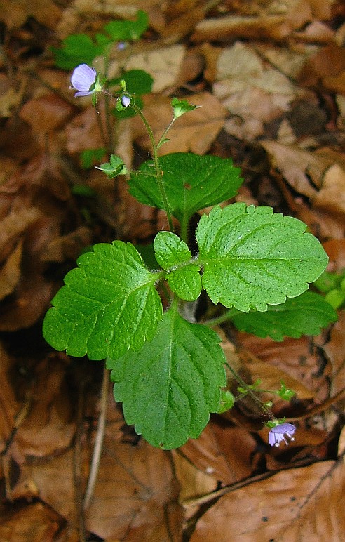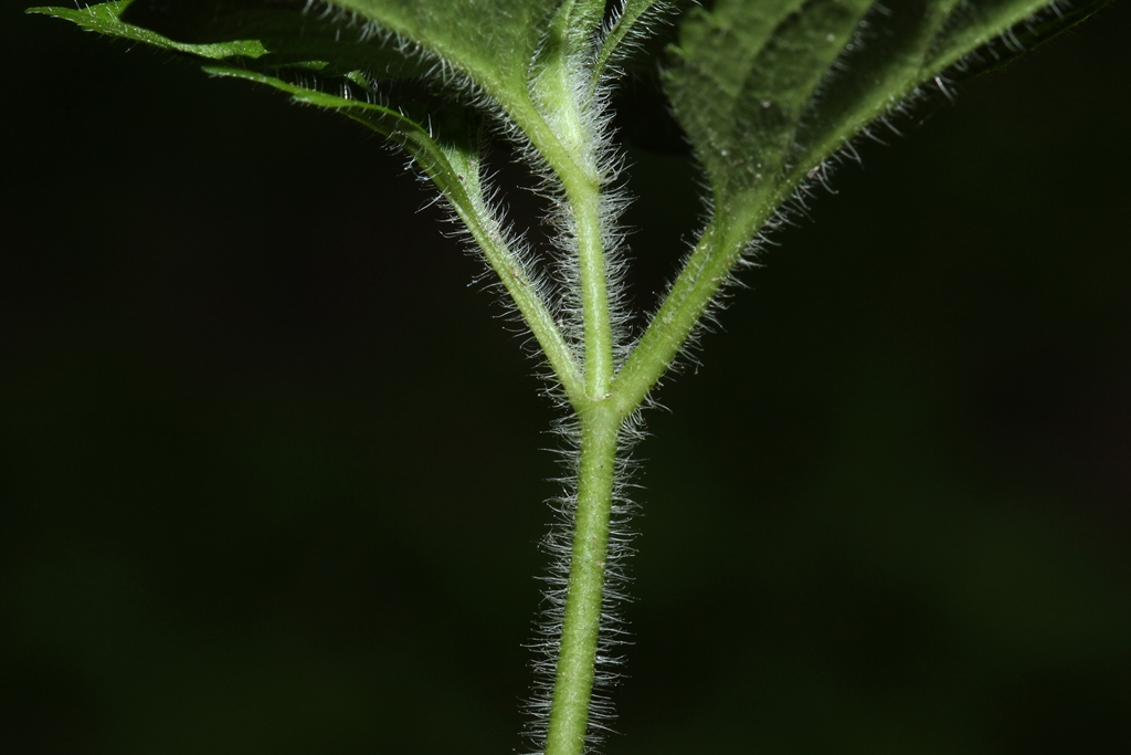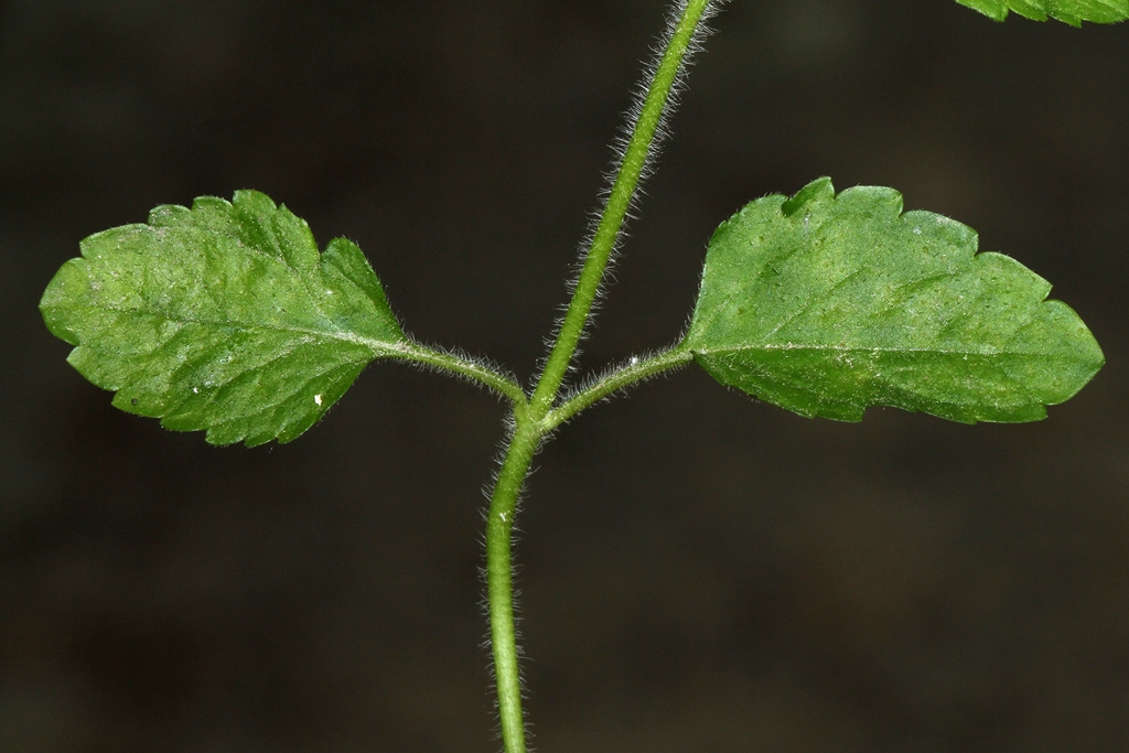 Blätter eiförmig, kurz gestielt, weich behaart, fein gesägt