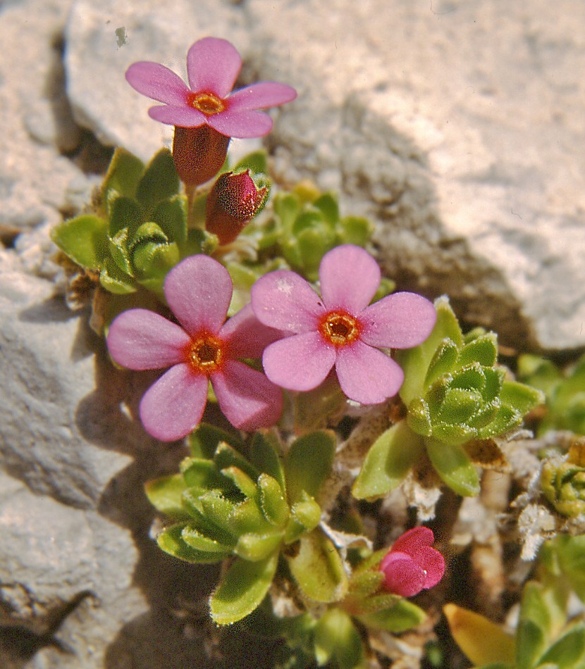 4 Verbreitung: Österreich, Südtirol, Blüten 8 - 12 mm im Durchmesser, Blätter spitz, gekielt, mit roter Spitze