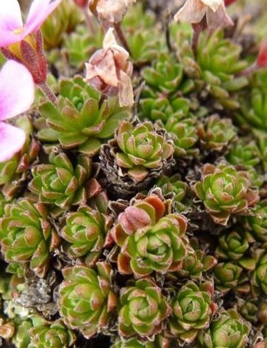 Androsace - Pflanze Polster bildend, Blüten einzeln, rosa, mit kurzem Schaft