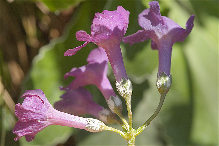 Blüten blauviolett oder rosa, im Schlund weiß, etwas mehlig