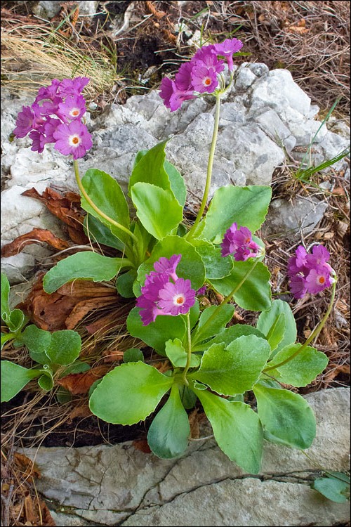 IV - V, Felsen, Wiesen (400 - 1500 m) Synonyme: English name: Nome italiano: Weltweite Verbreitung: Die Krain ist eine Landschaft im heutigen Slowenien. Primula carniolica ist in einem 70 Kilometer langen und 25 Kilometer breiten Gürtel südlich und westlich von Ljubljana endemisch. Hauptvorkommen bei Idrija, Trnovo, Borovnica und Iška.