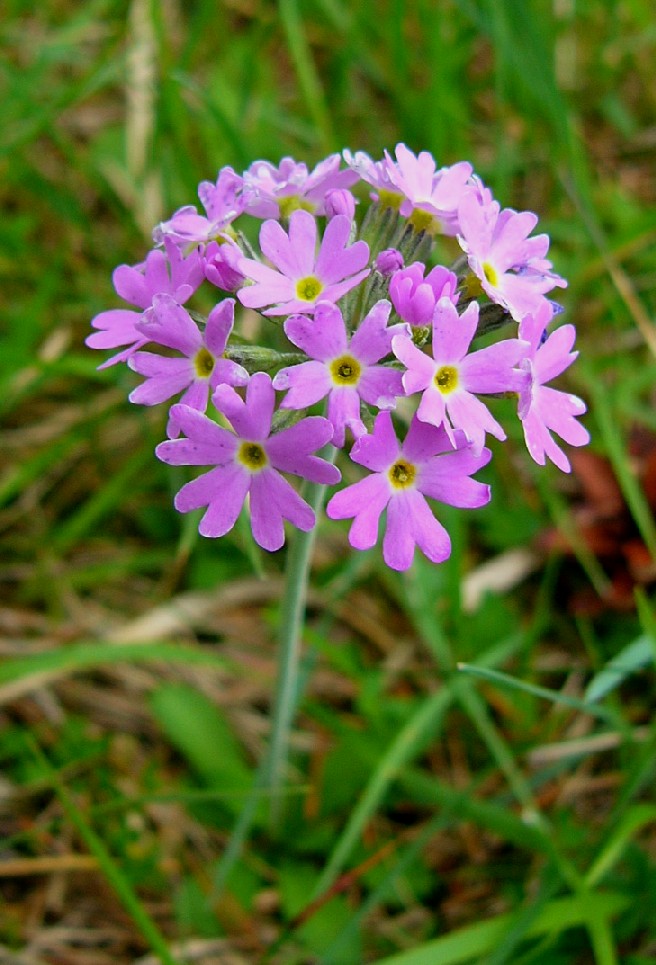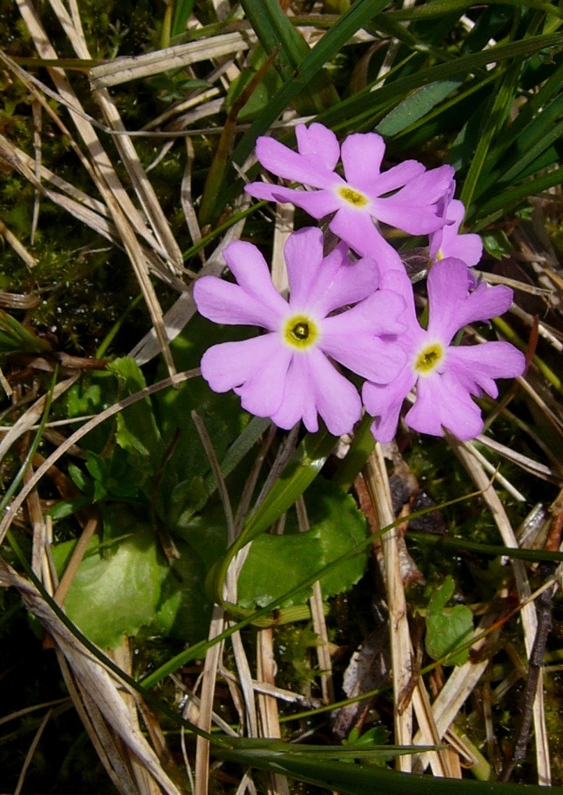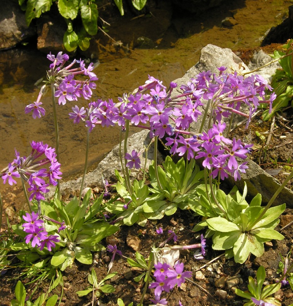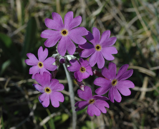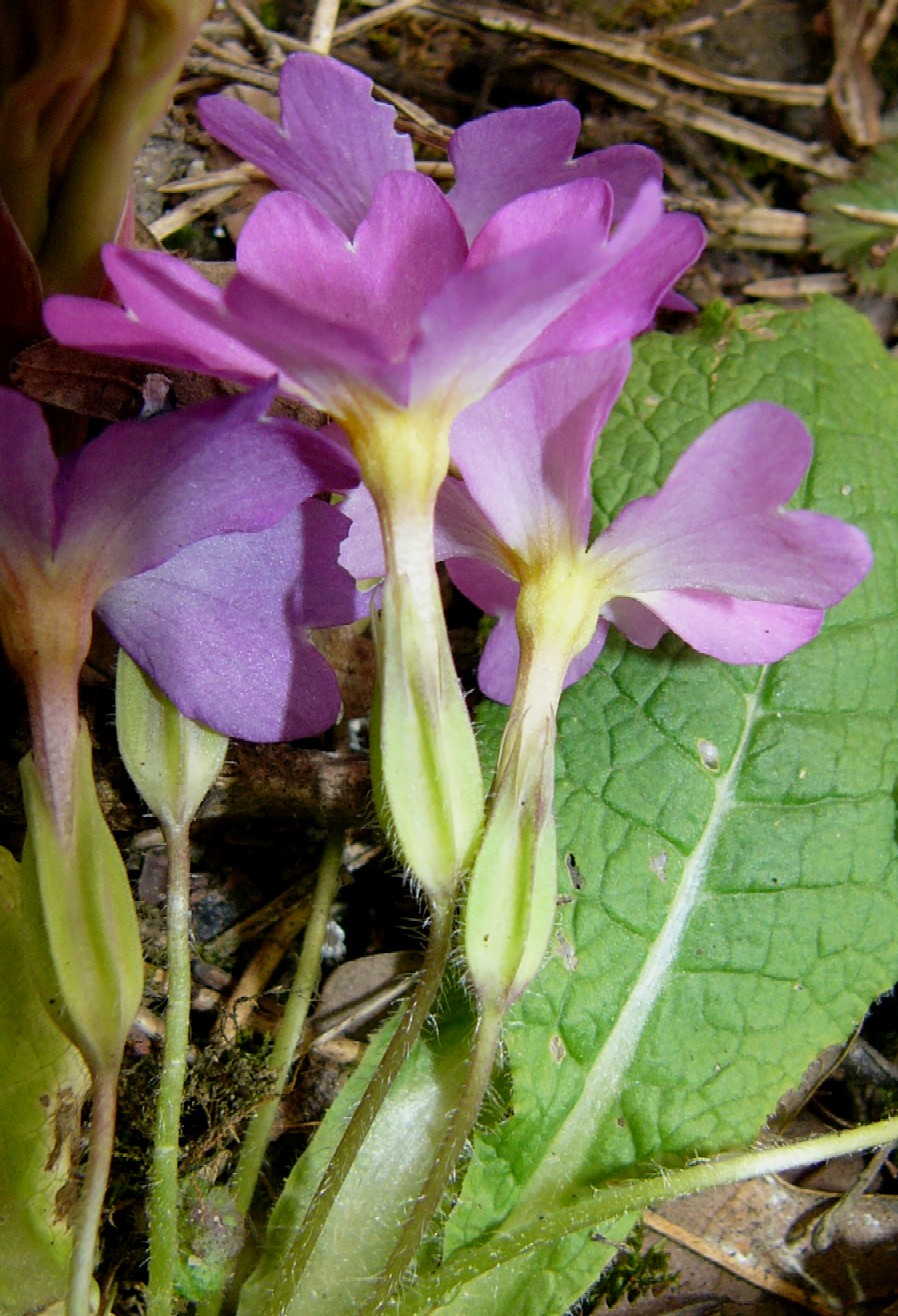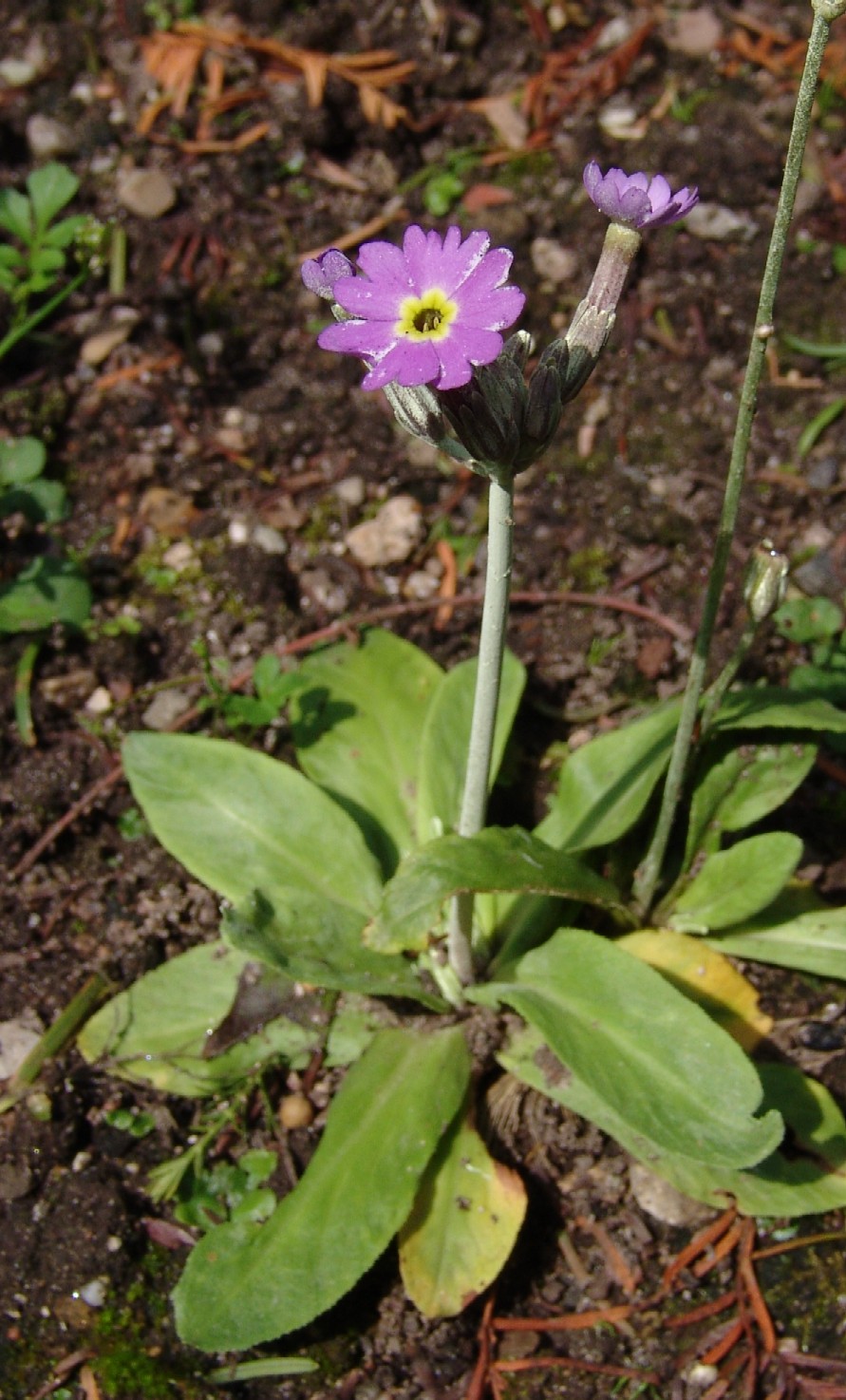 Primula - Blüten rosa oder violett, mit gelbem Schlund