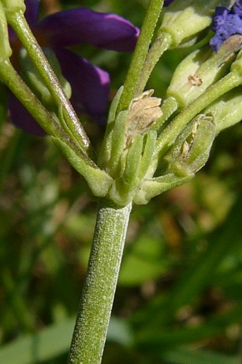 Hüllblätter der Dolde ausgesackt, Stängel mehlig bestäubt