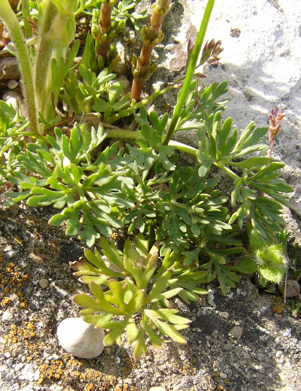 Grundblätter 2- 3- fach fiederteilig, Fiederabschnitte eilanzettlich, spitz oder stumpf