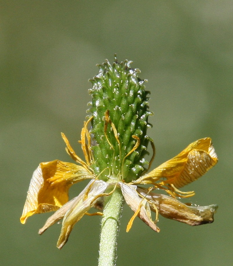 Fruchtstand länglich, eiförmig, 10 - 15 mm lang, 8 - 10 mm breit,Blütenboden kahl, seltener auch behaart, Nüsschen 2,5 mm lang, glatt, seitlich zusammengedrückt, mit hakigem oder geradem Schnabel