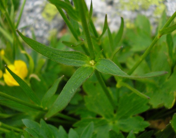 kurz Torus (Blütenboden) an der Ansatzstelle der Staubblätter behaart Abschnitte der Stängelblätter linealisch, 8 - 12 mal so lang wie breit > Ranunculus breyninus