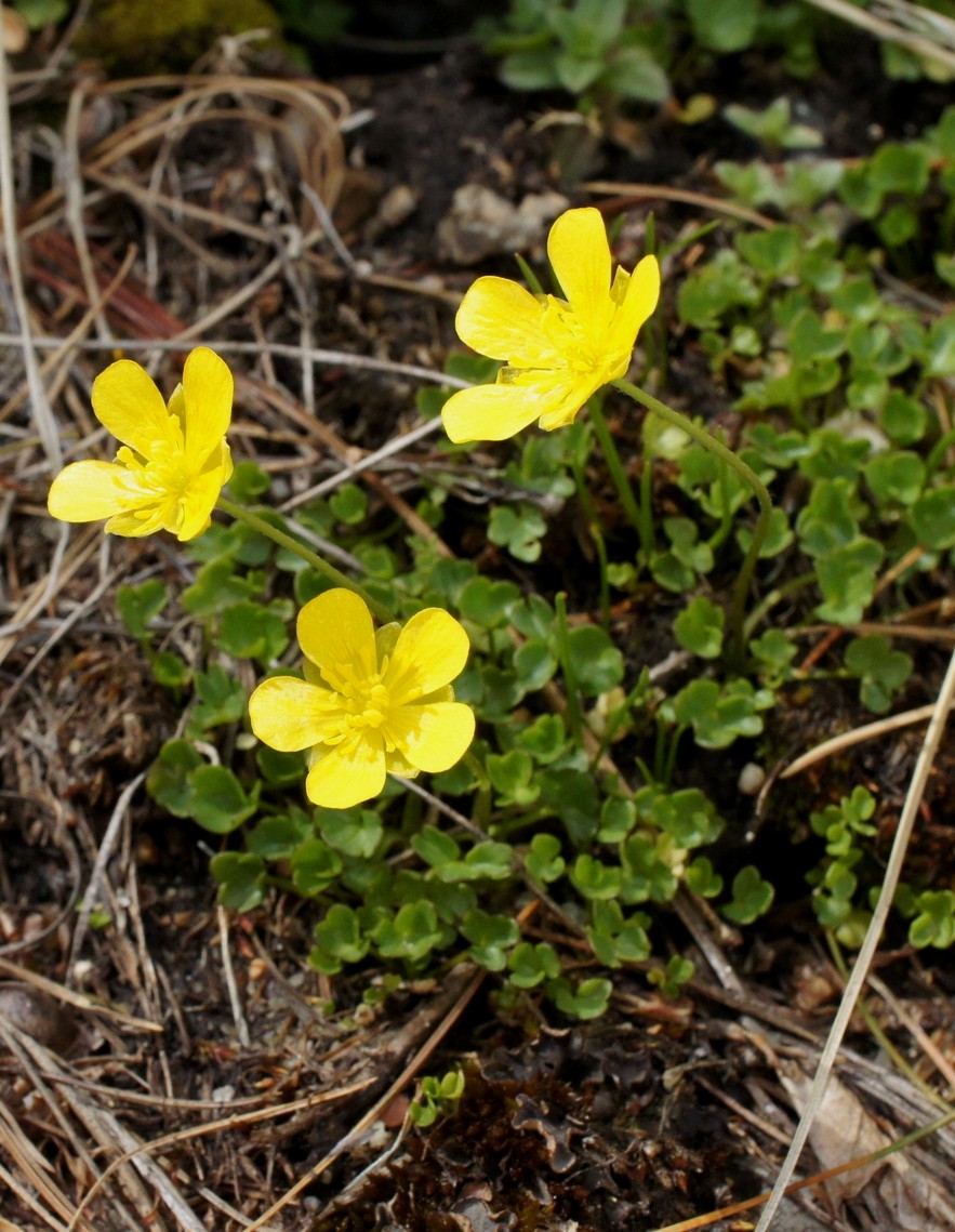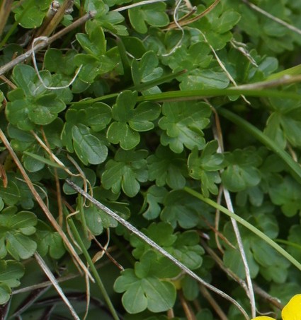 Grundblätter gestielt, Blattstiel schlank, Blattspreite rundlich, ca. 1