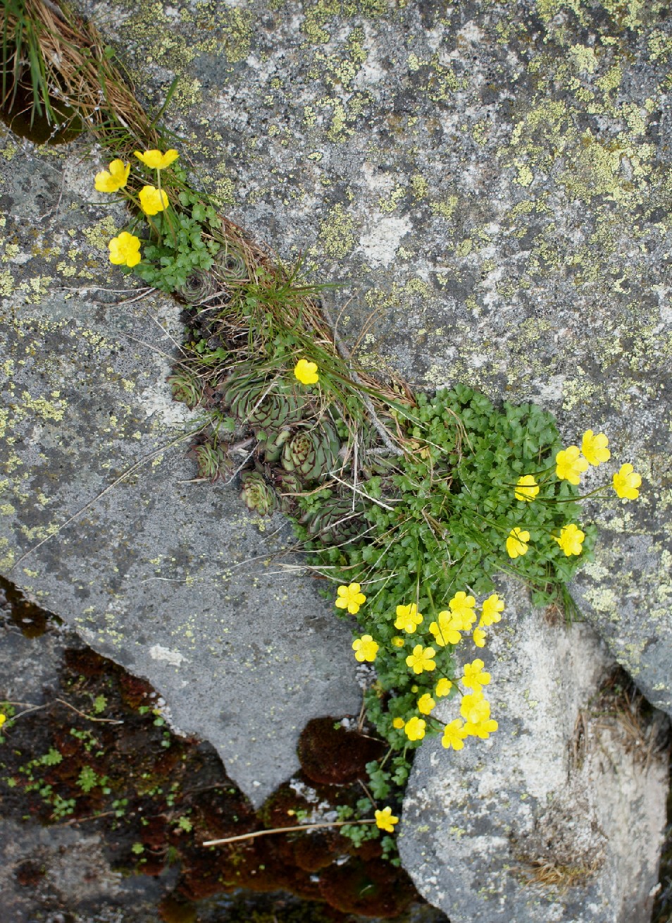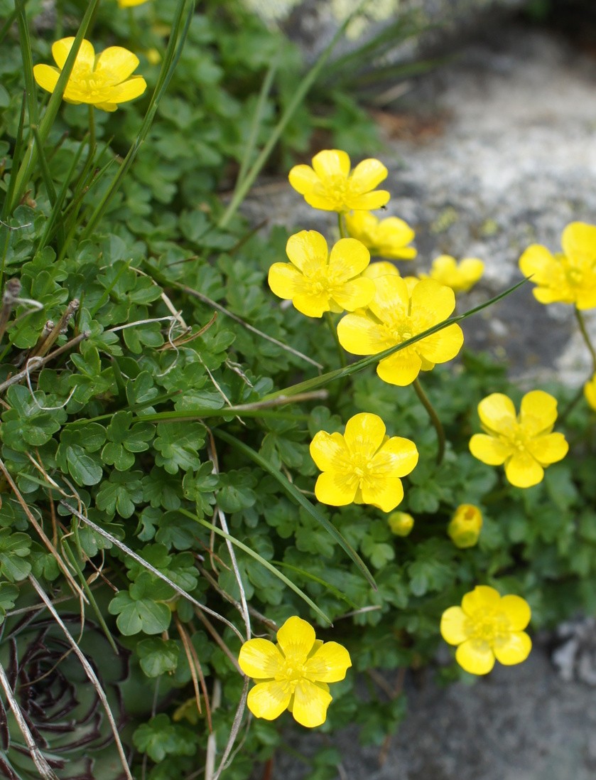 Blüten gelb, mit 5 Kronblättern, Kronblätter 8 - 12 mm lang, stumpf
