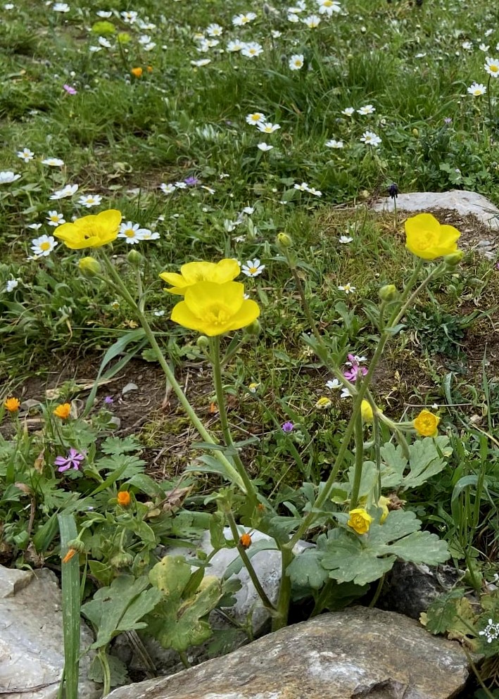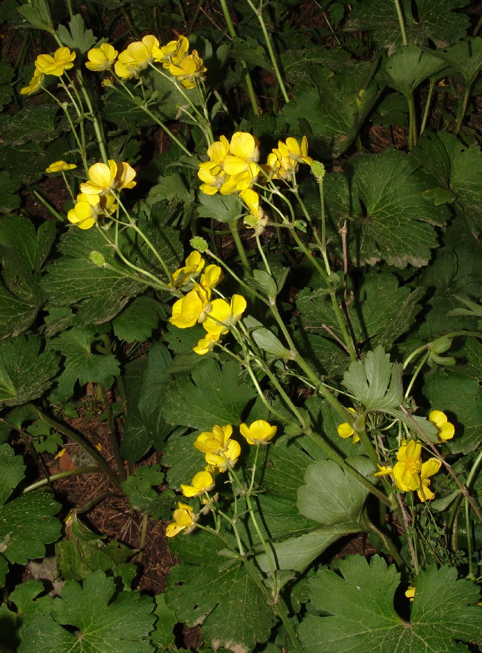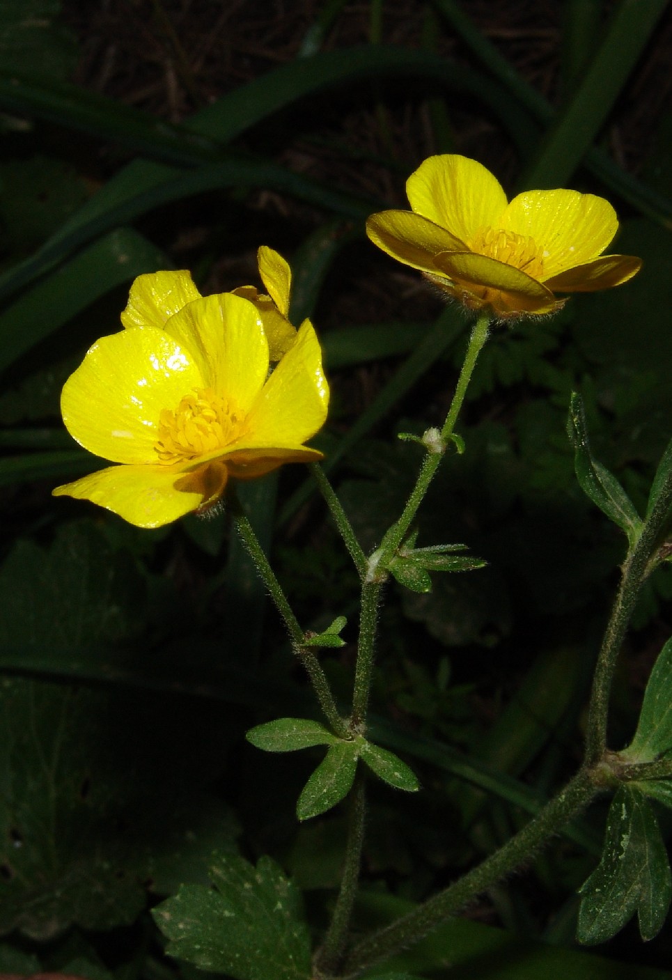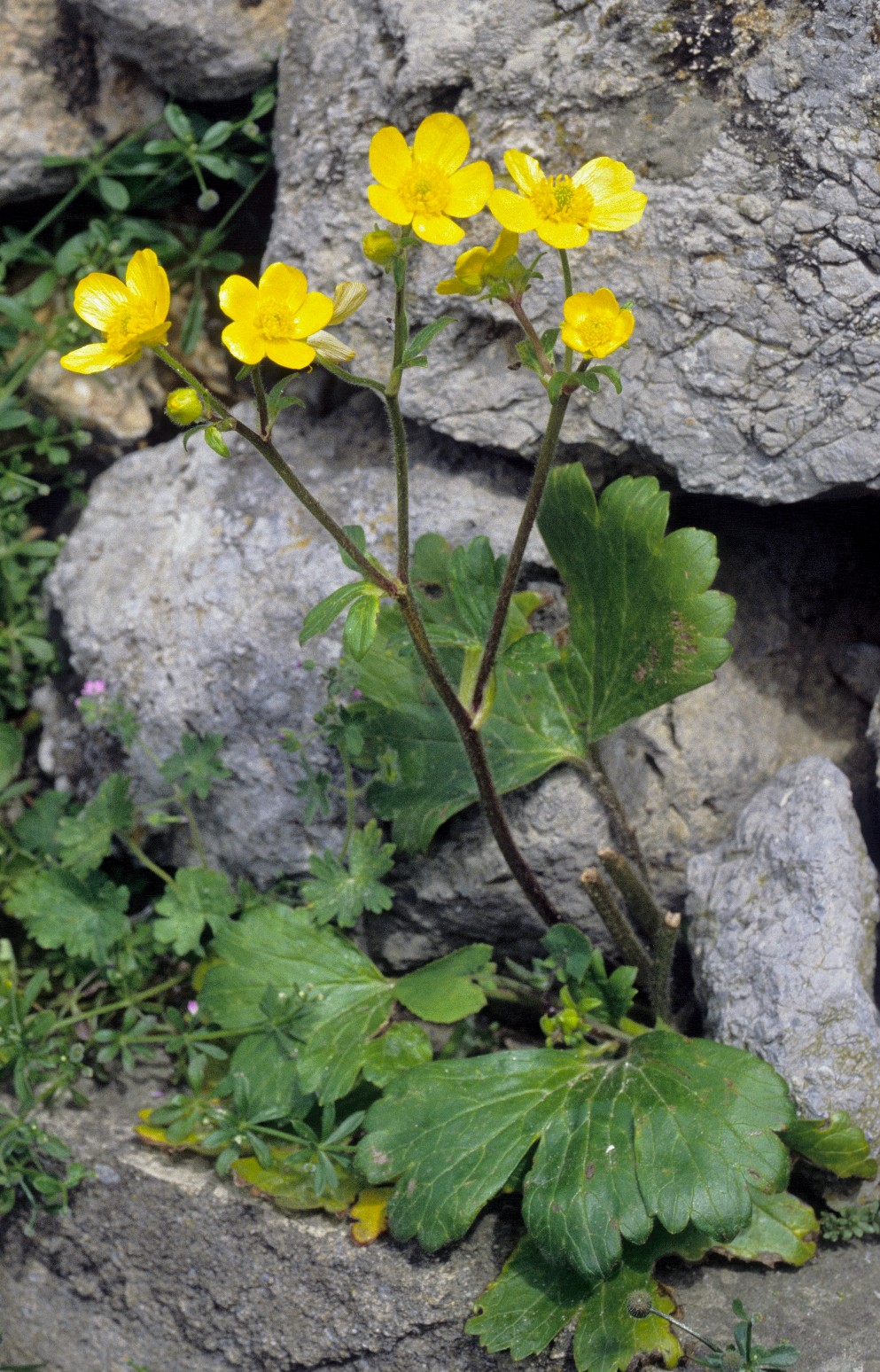 Ranunculus - Pflanze 20 - 80 cm hoch, Blüten gelb, meist mit 5 Kronblättern, Kelchblätter anliegend, Frucht seitlich zusammengedrückt, Blütenstiel rund, untere Stängelblätter gestielt, Grundblätter gelappt, Abschnitte schwach gelappt