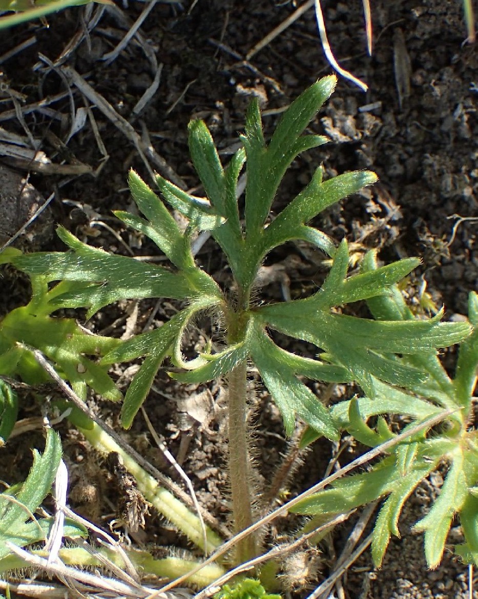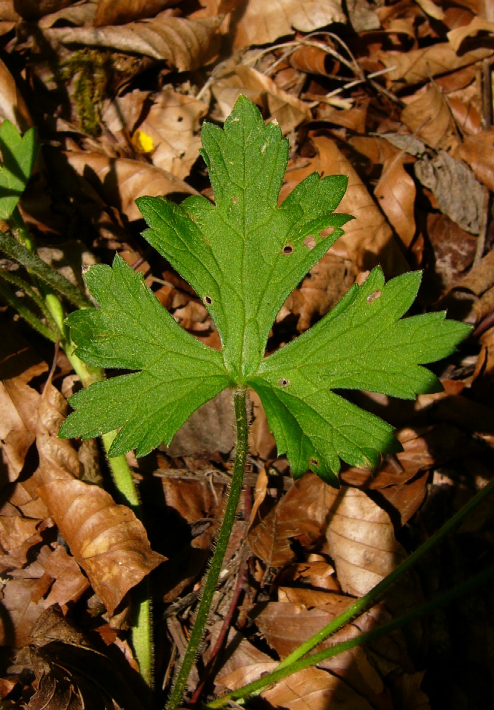 Ausläufern Mittelabschnitt des Endfiederchens der Grundblätter gestielt, höchstens zu 1/3 eingeschnitten > Ranunculus repens