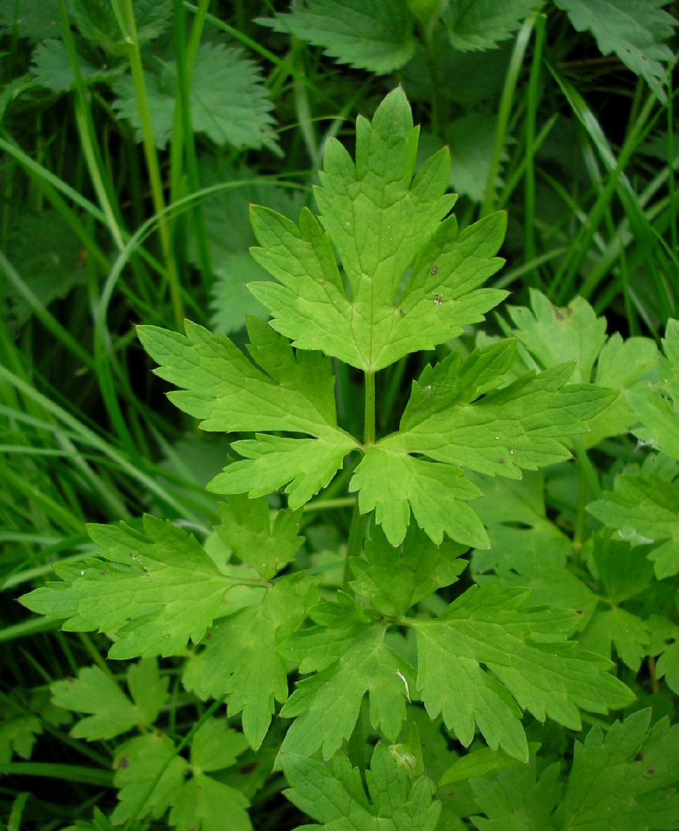 Pflanze ohne Ausläufer Mittelabschnitt des Endfiederchens der Grundblätter gestielt, fast bis zum Stiel eingeschnitten > Mittelabschnitt gestielt, tief geschlitzt