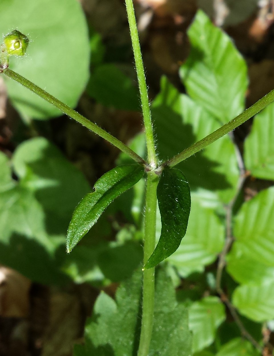 Stängel rund, im oberen Teil angedrückt behaart oder verkahlend, die obersten Stängelblätter ganzrandig, hochblattähnlich, die mittleren 3-lappig, im unteren Teil sind die Stängelblätter gestielt und den Grundblättern ähnlich